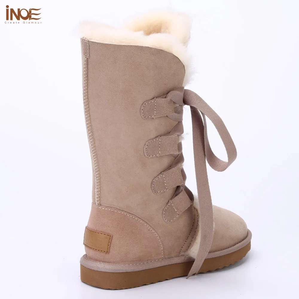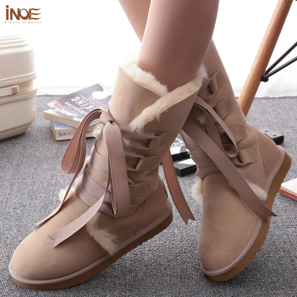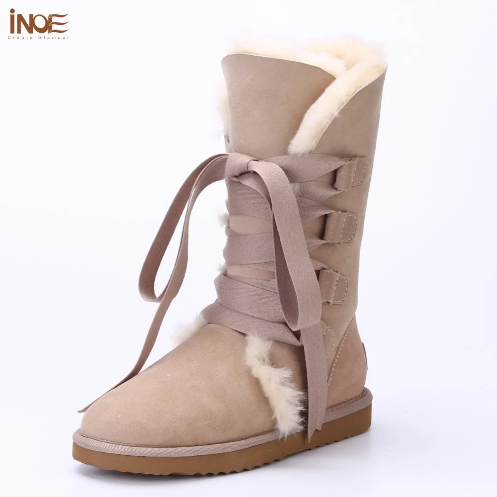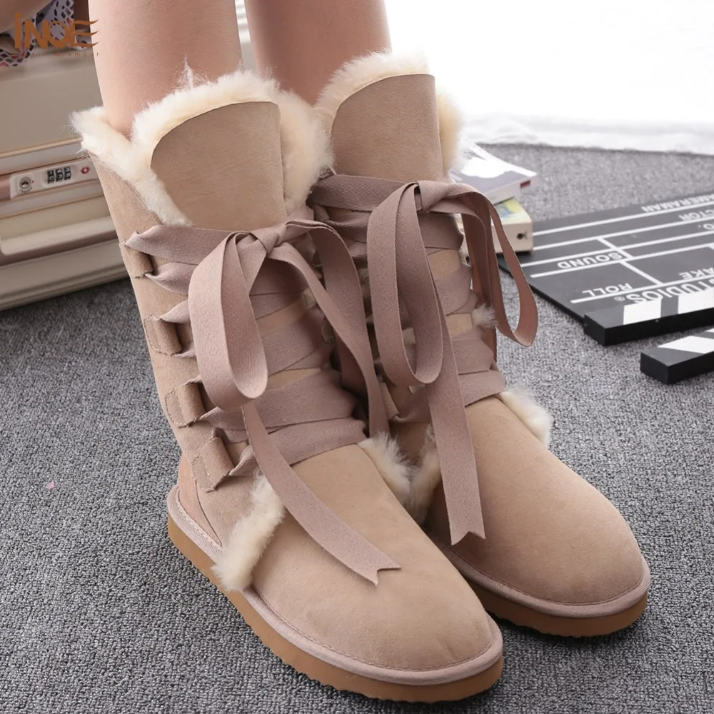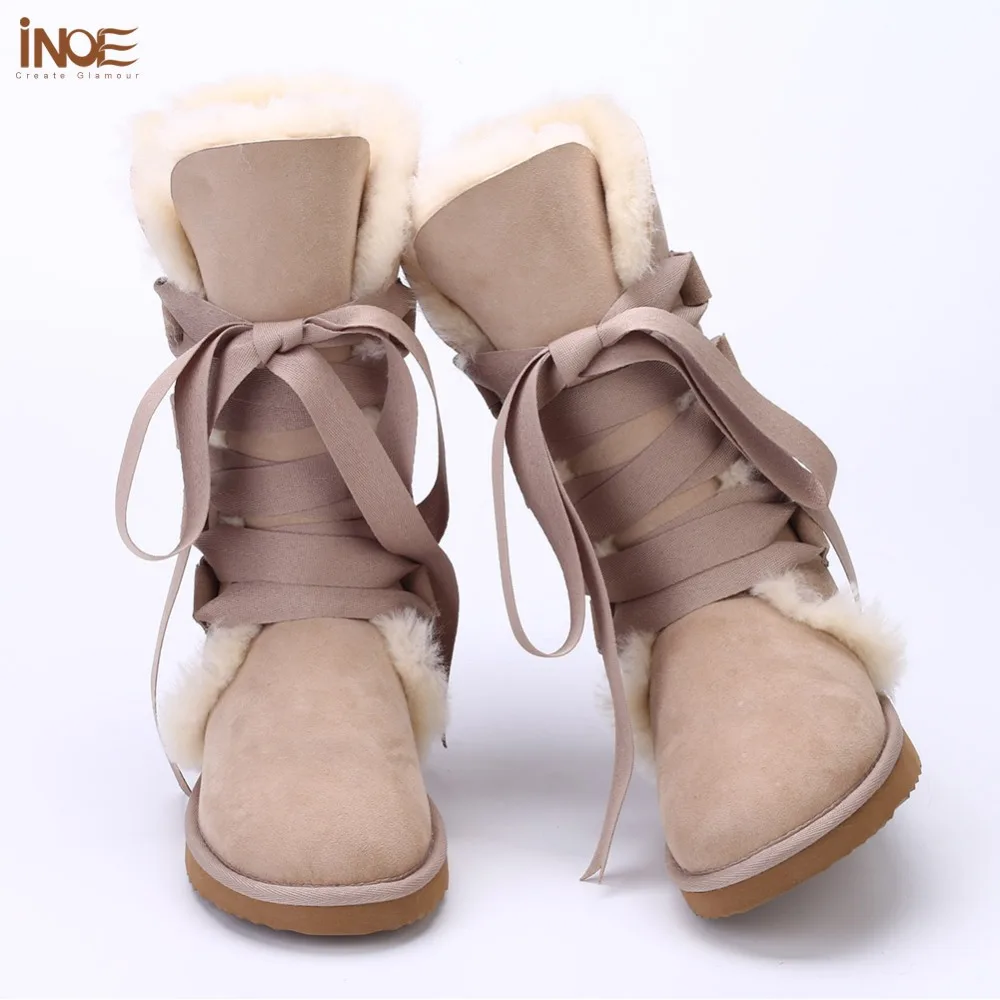 Женские зимние ботинки из натуральной овечьей кожи, на шнуровке