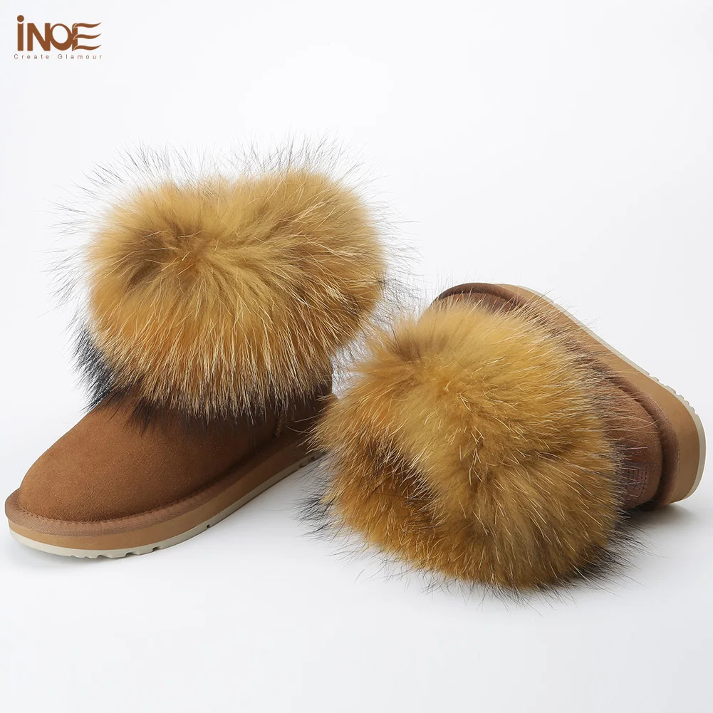 Женские зимние ботильоны из овечьей кожи, с лисьим мехом
