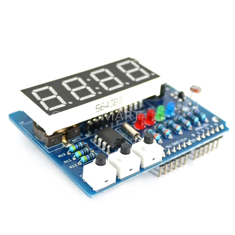Часы щит RTC модуль DS1307 многофункциональная Плата расширения 4-значный светильник вой Датчик Кнопка зуммер Термистор для Arduino
