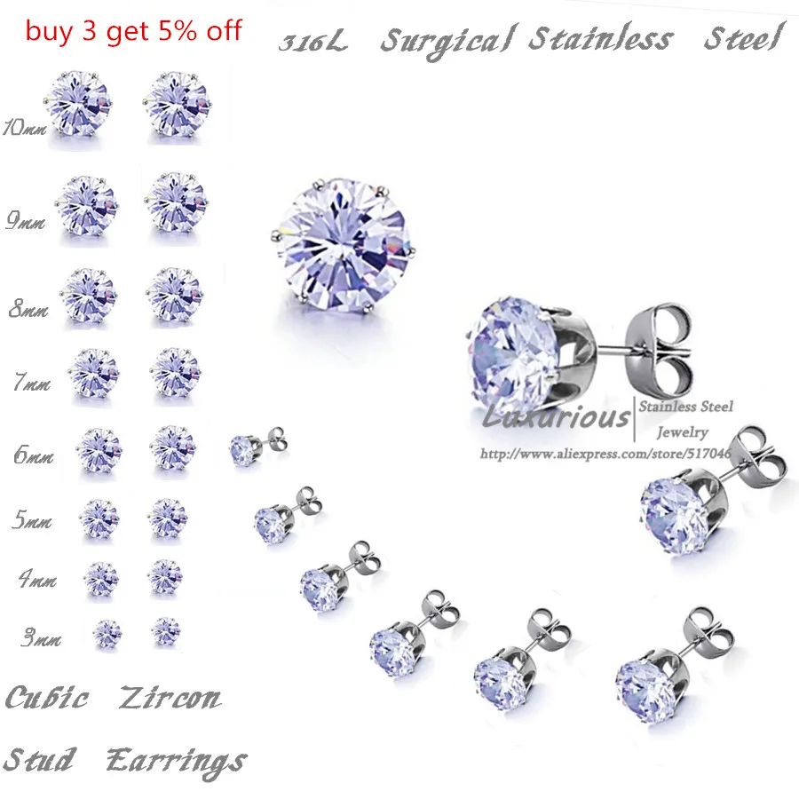 Маленькие серьги-гвоздики LUXUKISSKIDS из нержавеющей стали диаметром от 3 до 10 мм светильник голубым кубическим цирконием