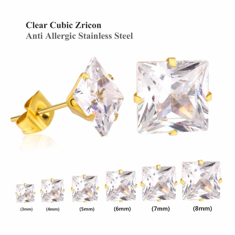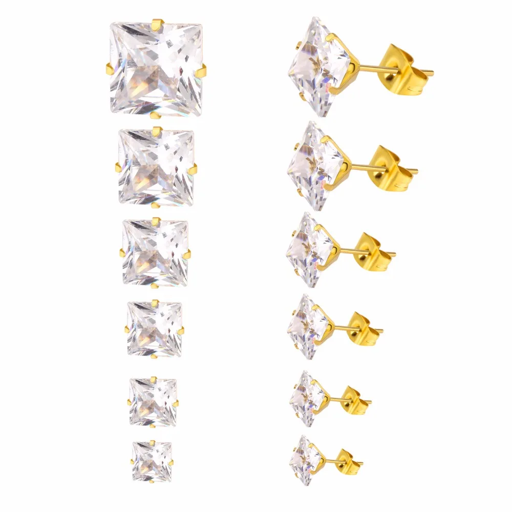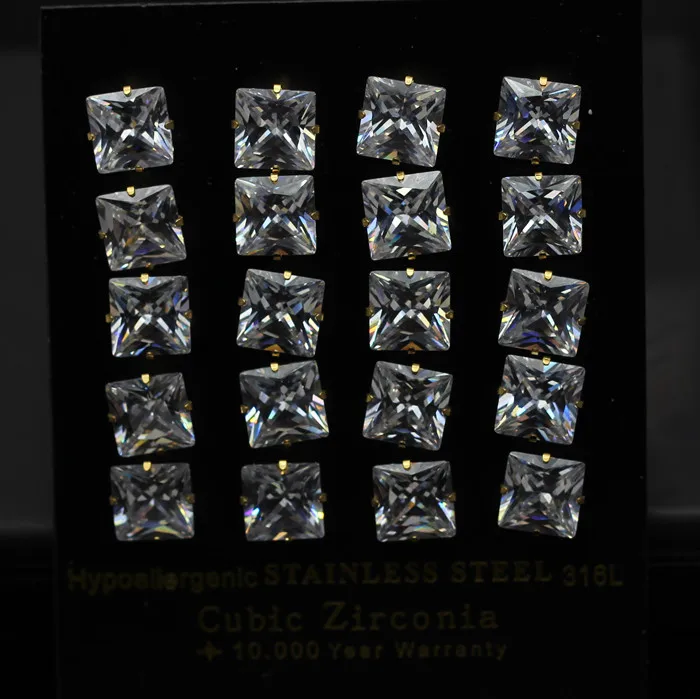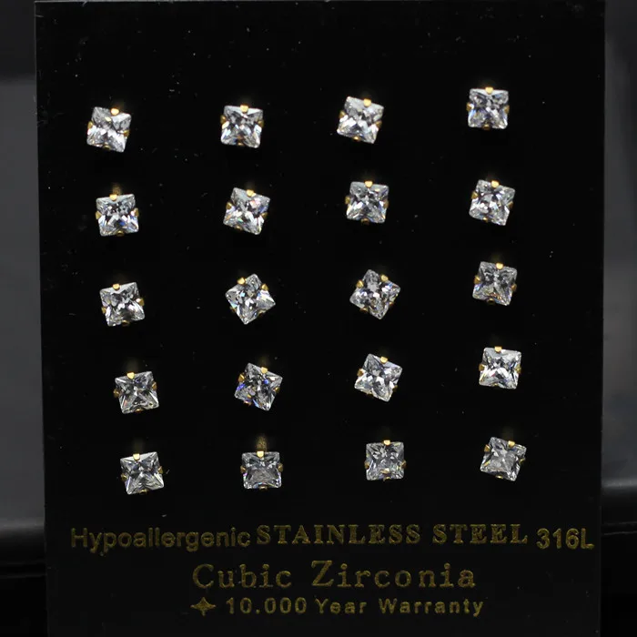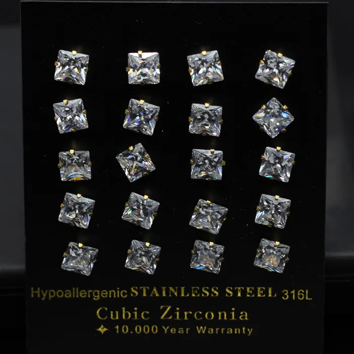 LUXUKISSKIDS 3-10 мм 10 парлот Детские прозрачные серьги-гвоздики для женщин мужчин квадратные циркониевые из нержавеющей стали модные ювелирные изделия icon star icon star icon star icon star icon star