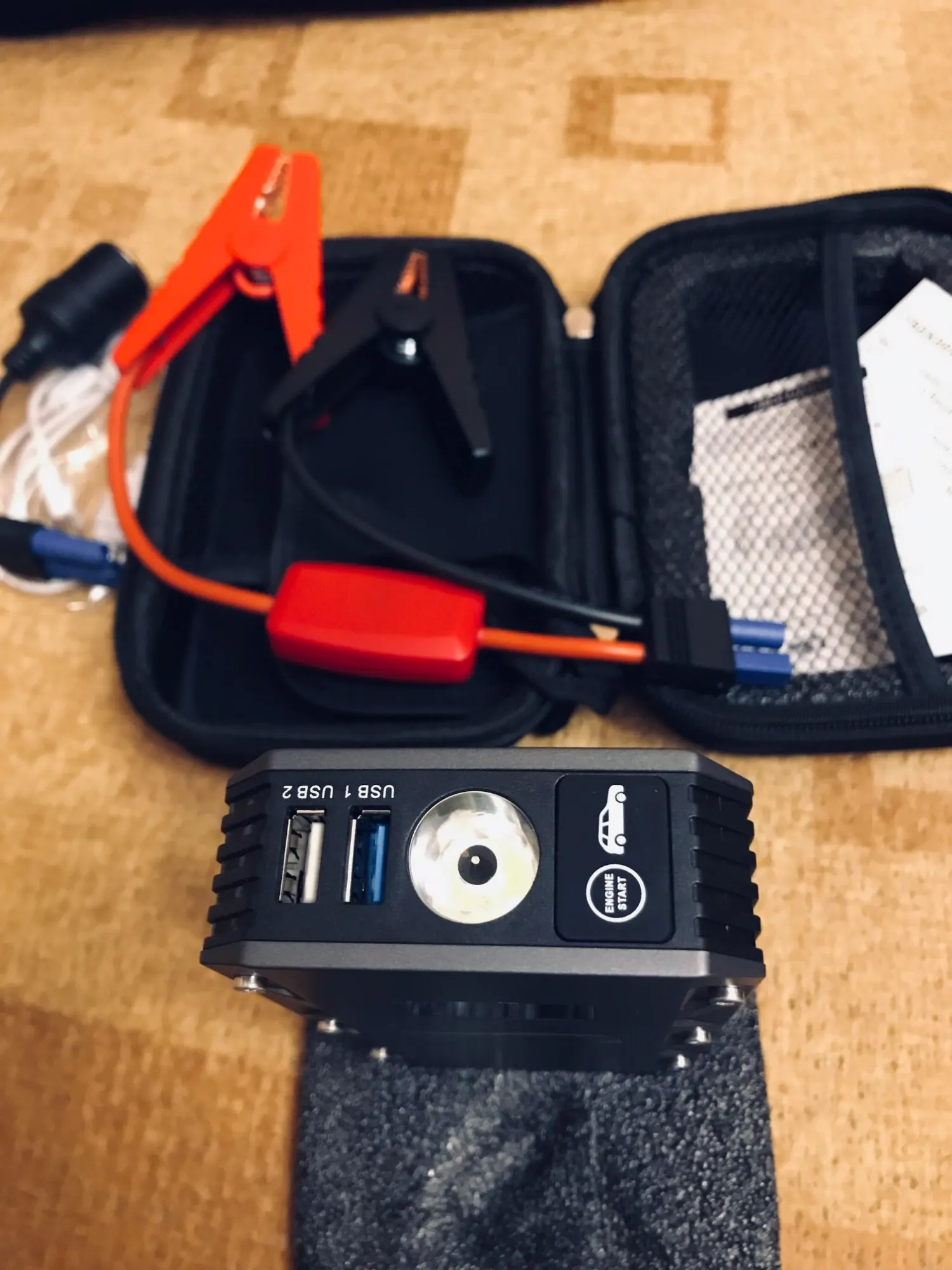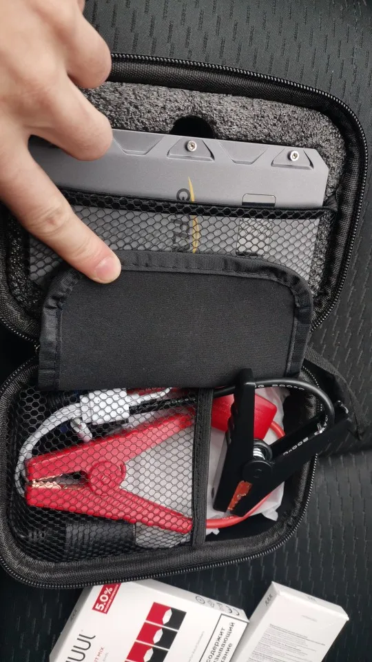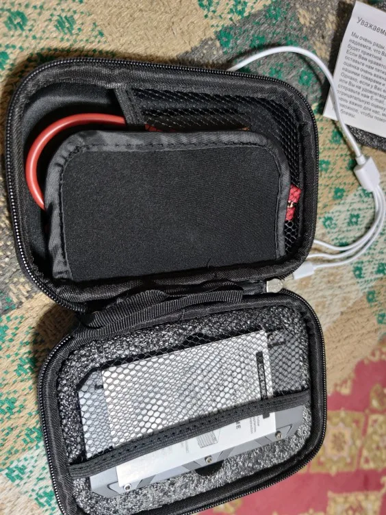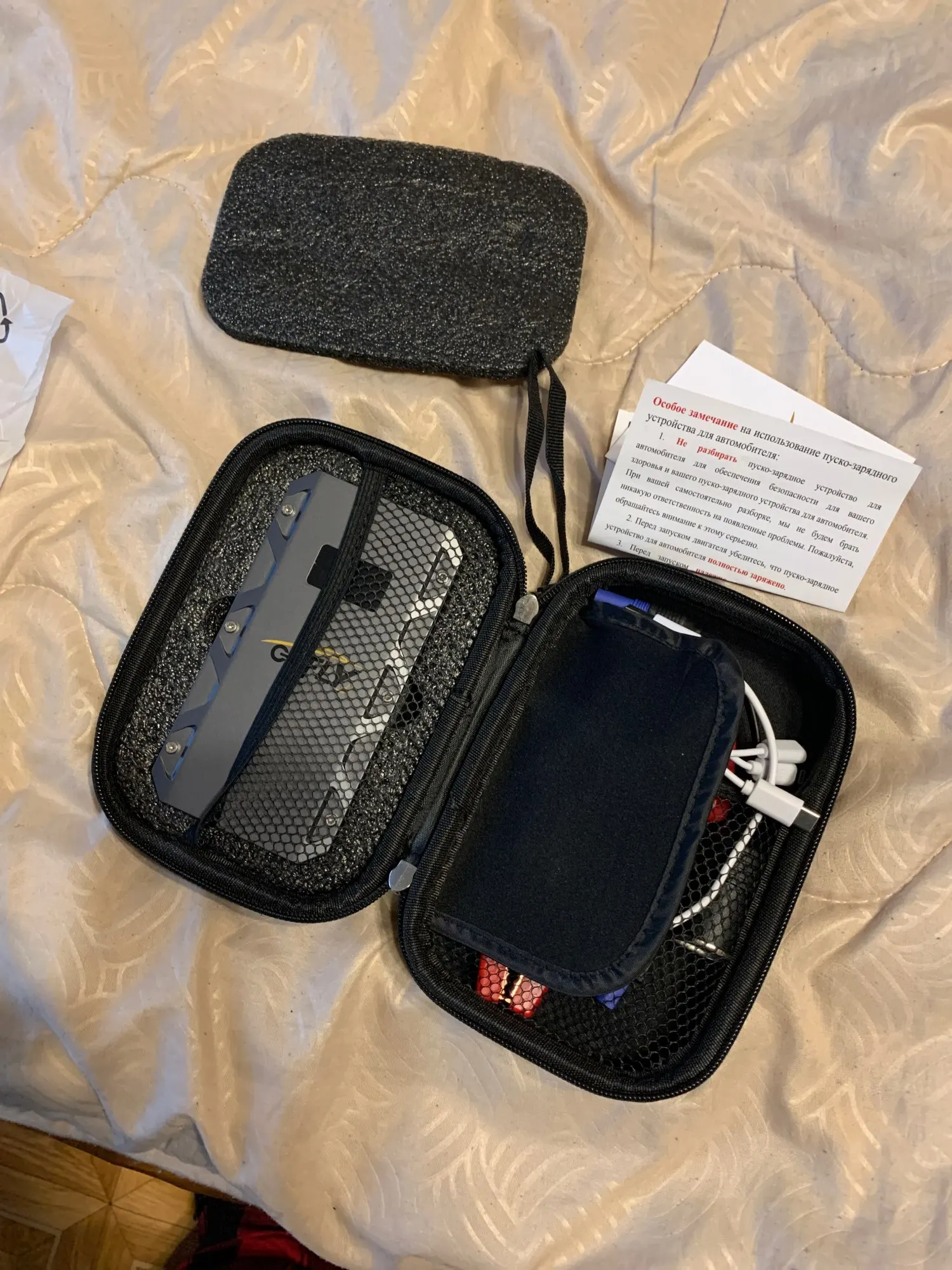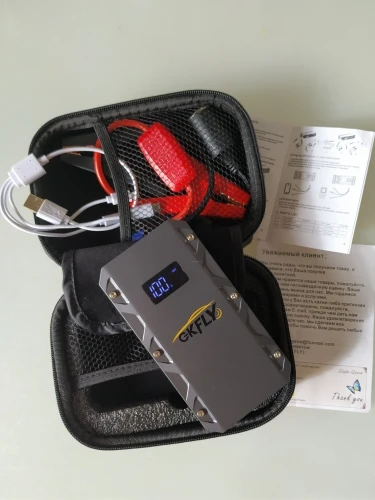 Заказывал из РФ. Курьер приехал через несколько дней. Посылка без коробки, но без повреждений и цела. всё упаковано в кофр. заряжен бустер на 95%. заряжается от USB type C. фонарик и режим павербанка работает. Пуск автомобиля пока не проверял.