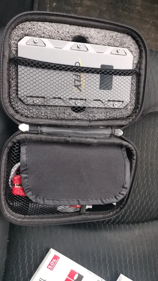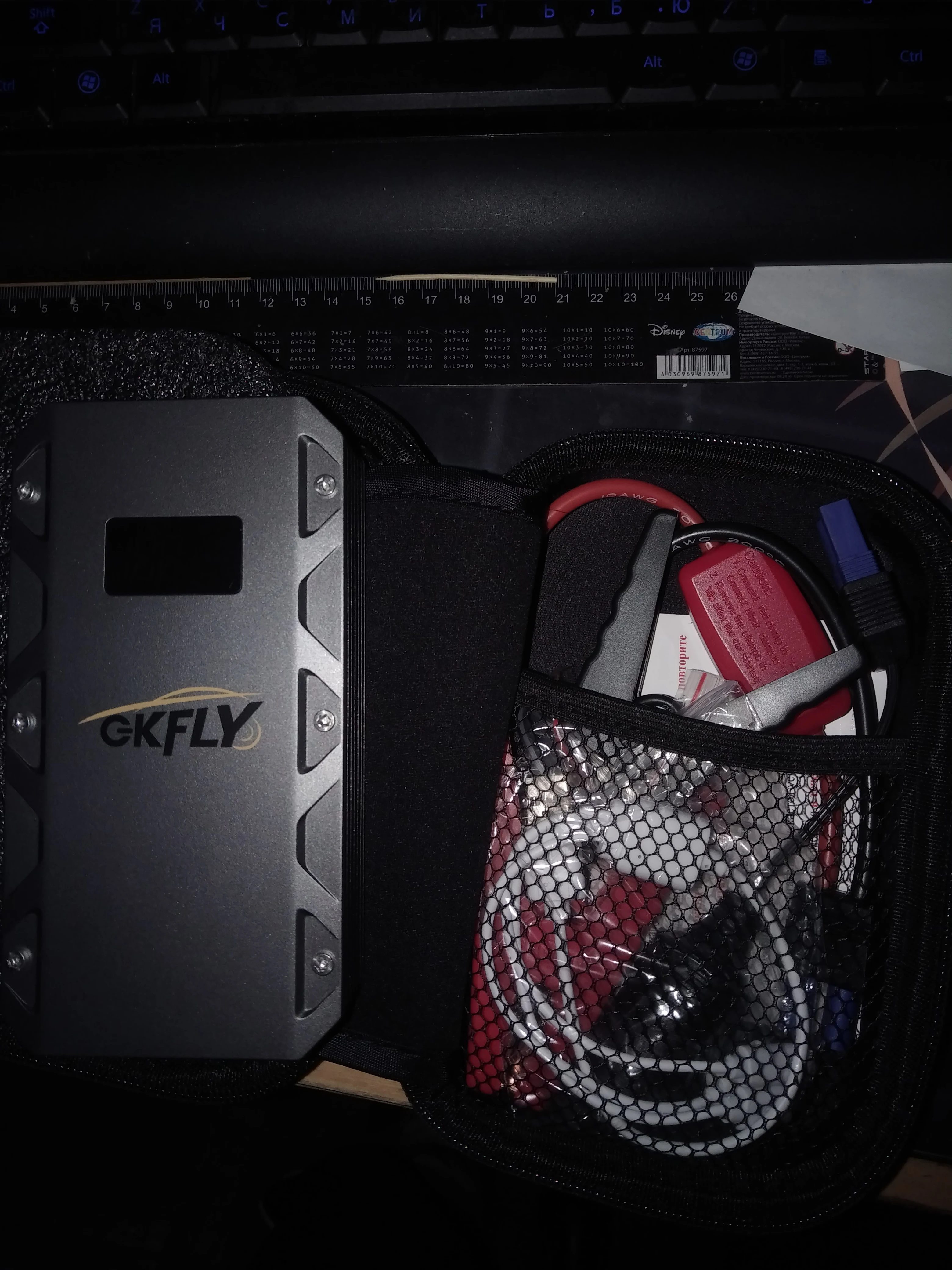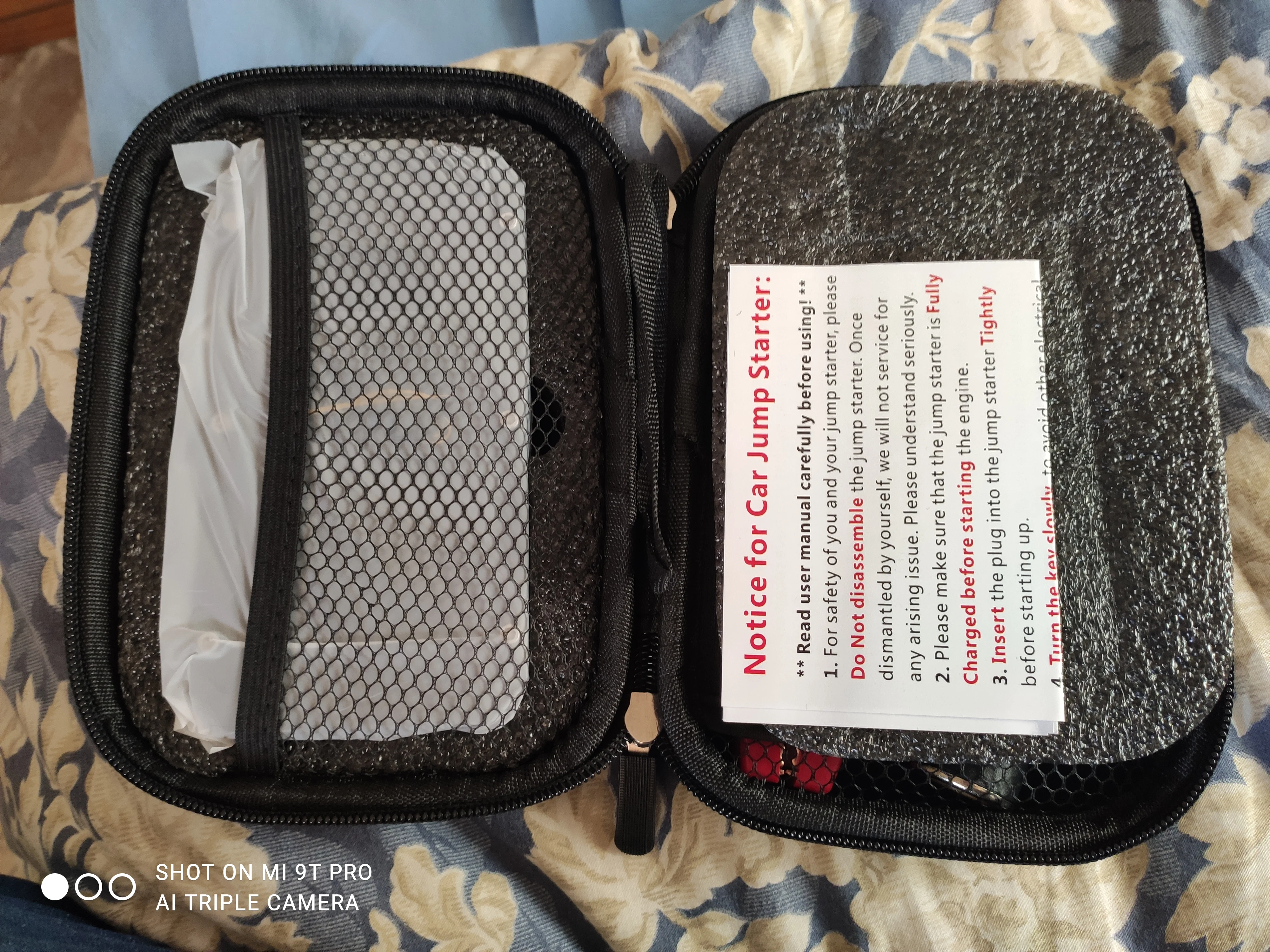 Заказывал из РФ. Курьер приехал через несколько дней. Посылка без коробки, но без повреждений и цела. всё упаковано в кофр. заряжен бустер на 95%. заряжается от USB type C. фонарик и режим павербанка работает. Пуск автомобиля пока не проверял.