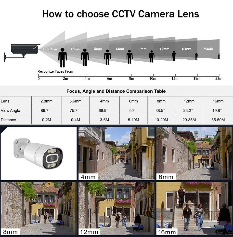 Примечание: Эта ip-камера по умолчанию HD 3,6 мм объектив, если вам нужны другие линзы, пожалуйста, оставьте нам сообщение на странице вашего заказа. Ниже находится фокус объектива, ангел обзора объектива, Таблица Сравнения расстояния объектива. (для справки)