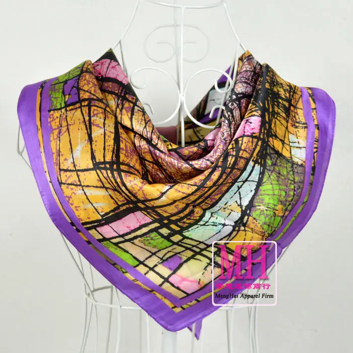 2013 Модные женские аксессуары, большой квадратный шелковый шарф, горячая Распродажа, брендовый фиолетовый Атласный квадратный шарф с принтом на осень, весну US $6,50/Шт.