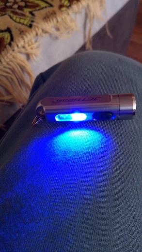 Очень качественное исполнение, настоящий наключник. Выточен аккуратно, детали подогнаны идеально, даже не позоже на китай). Небольшие сомнения только в заглушке usb, и возможные включения в кармане, так как кнопка никак не блокируется. Свет хороший, очень яркий, думаю на максимуме светит на обещанные 500 люмен. Температура диода холодная, хотспот чуть синит, засветка теплее, в районе 5000-6000к. Цветные диоды светят очень ярко, можно любым цветом освещать небольшое помещение. УФ так же хорош, в темноте спокойно светит на 2-3 метра. Нигде не пишут про свечение в выключенном состоянии. Пока не понял что это - светонакопитель в отражателе, или какое-то остаточное свечение. Позже дополню отзыв. Брал за 1600, своих денег стоит точно! Очень компактный, практичный, и удобный. Рекомендую!