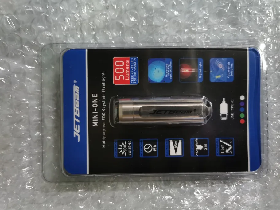 Лампа была доставлена в течение 24 дней, под оригинальным блистером, защищена картонной коробкой и сопровождается подвесным кольцом и документацией/руководством. JETBEAM's «mini one», безусловно, хорошо построен. Качественная оптическая система, объектив и отражатель. Высокоуровневое оборудование с постоянным током, защитой от светодиодов и батарей, мощным программным обеспечением и т. д. Режим turbo, полученный при непрерывном давлении, удивлен своей мощностью (450/550 лм и струей 80/100 м) шесть режимов в белом свете, более различные цветовые режимы, больше нет УФ-режима. Встроенный USB -C кабель перезаряжаемый аккумулятор (не поставляется) в целом, печать отличная. Только нижняя сторона: Ограниченная емкость аккумулятора (120 мА · ч), очень приятный дизайн. Каждая копия пронумерована.