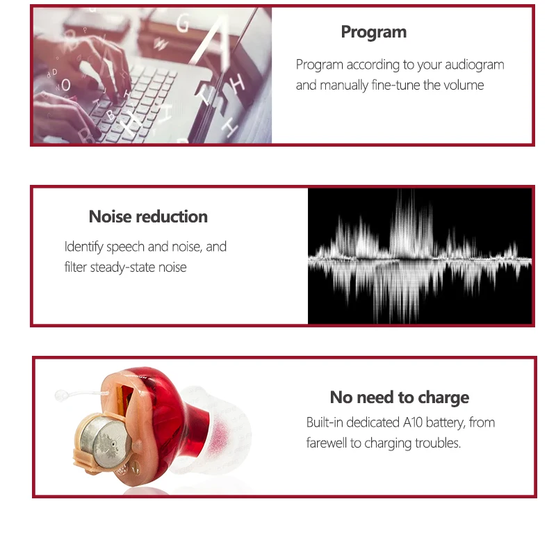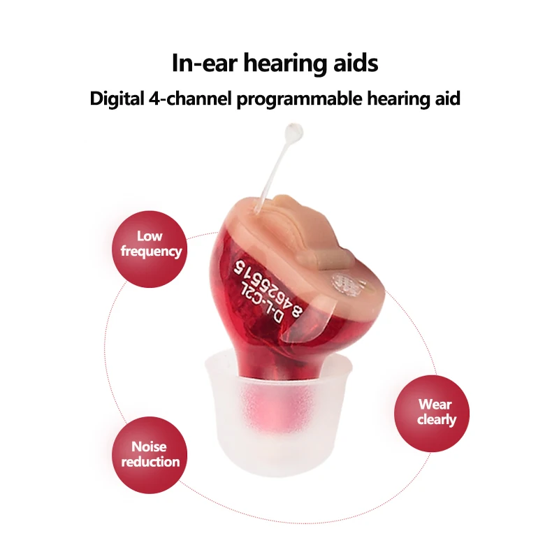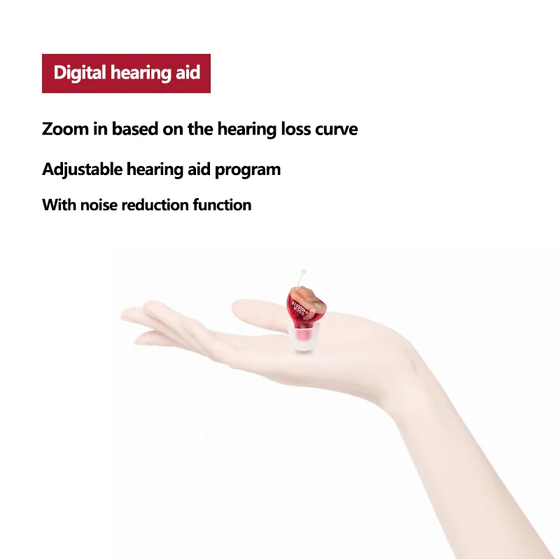 Цифровой программируемый невидимый слуховой аппарат CIC,Синий цвет для левого уха,Красный цвет для правого уха.