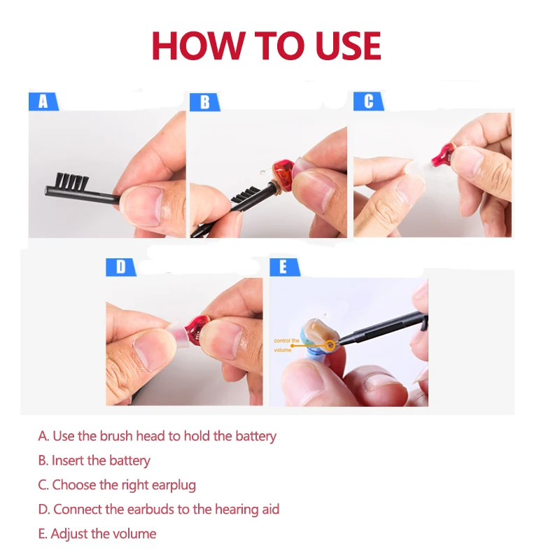 -Отрегулируйте громкость до минимального, прежде чем носить.-Выберите наушник немного большего размера, чтобы избежать Уистлера.-Увеличение громкости постепенно, чтобы избежать внезапного увеличения звука.-Если вы слышите завывание, проверьте, подходит ли ушной (силикагель) Размер вилки, подходящий выбор затычек для ушей и подключен, убедитесь, что нет утечки воздуха.-Пожалуйста, Регулярно очищайте ушные вилки или ушные формы, чтобы обеспечить нормальное использование слуховых аппаратов.-Используйте в течение длительного периода времени, пожалуйста, удалите батареи, чтобы предотвратить размывание батареи слуховой аппарат