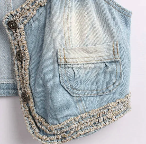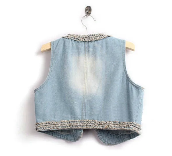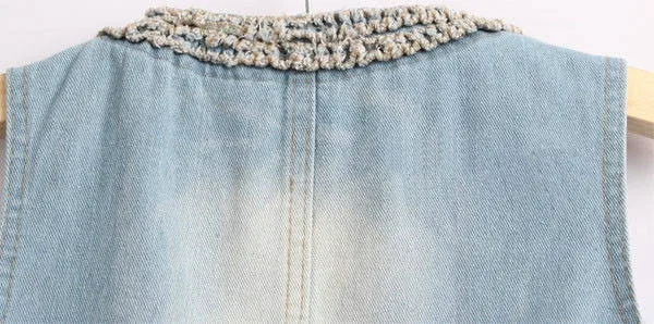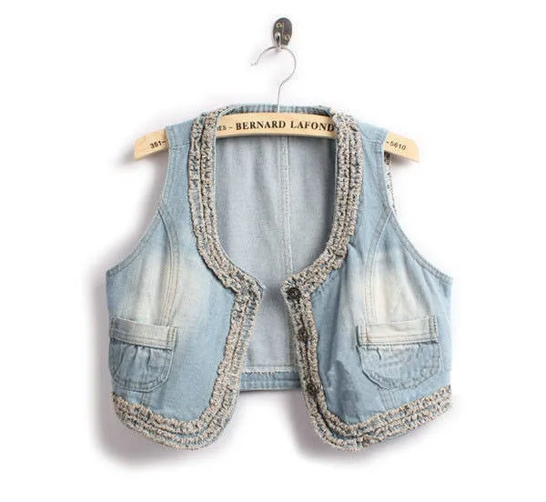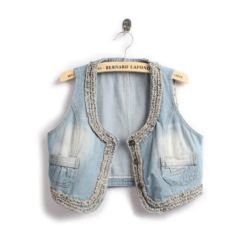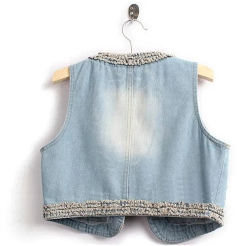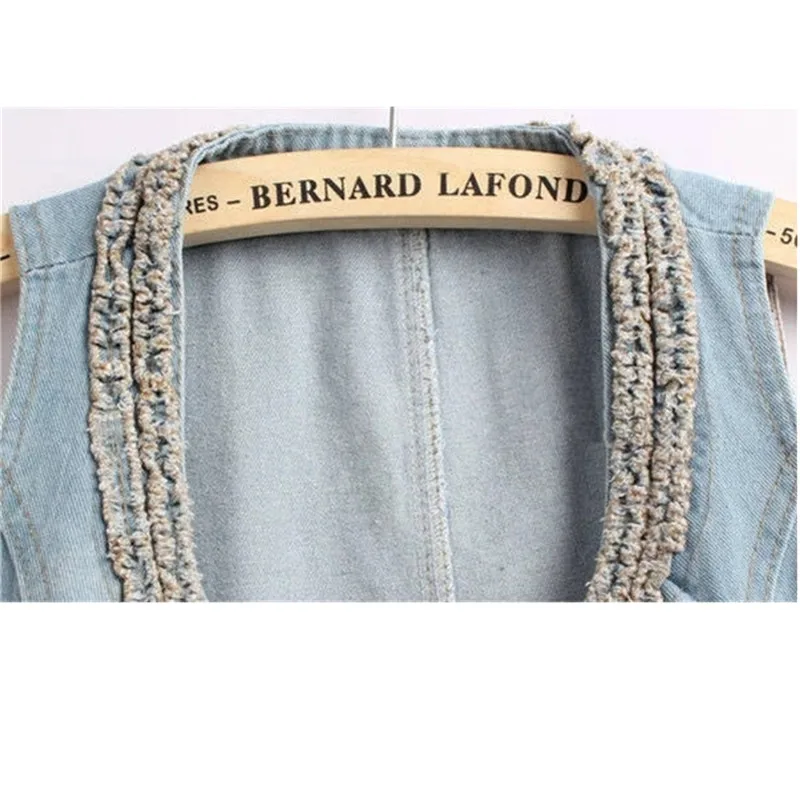 Для женщин ретро стираный рукава персонализированный Кардиган Джинсы джинсовый жилет Детская жилетка, пальто, куртка Бесплатная Размеры