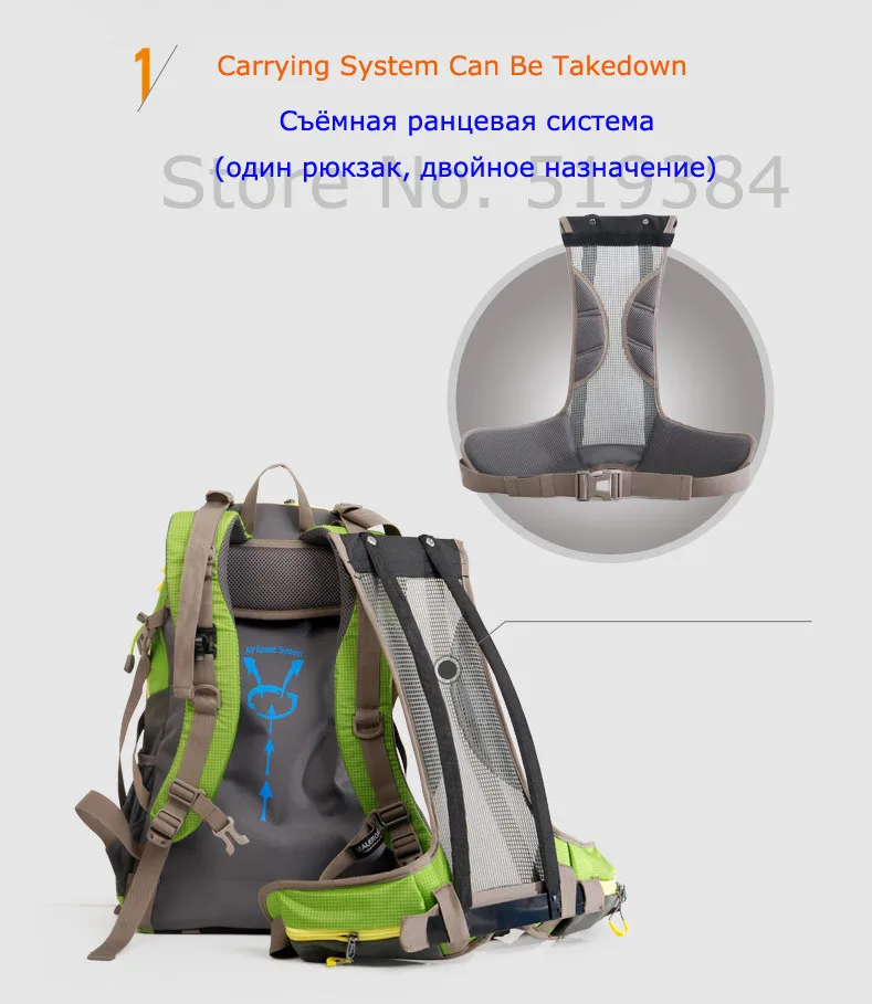 3. Подшипниковая система съемная, эта подшипниковая система может выдерживать вес упаковки и распределять нагрузку по телу в другом положении и защищать спину от потливости, чтобы защитить вас спину и плечи, Вы не будете чувствовать себя очень уставшим при большом весе и длительной поездке, но эта подшипниковая система будет занимать некоторую площадь рюкзака около 10 литров после фиксации, потому что она имеет сетчатую подвесную систему, если вы отсоедините его, вы увидите его реальную вместимость и используйте рюкзак как повседневное использование или дорожный рюкзак.