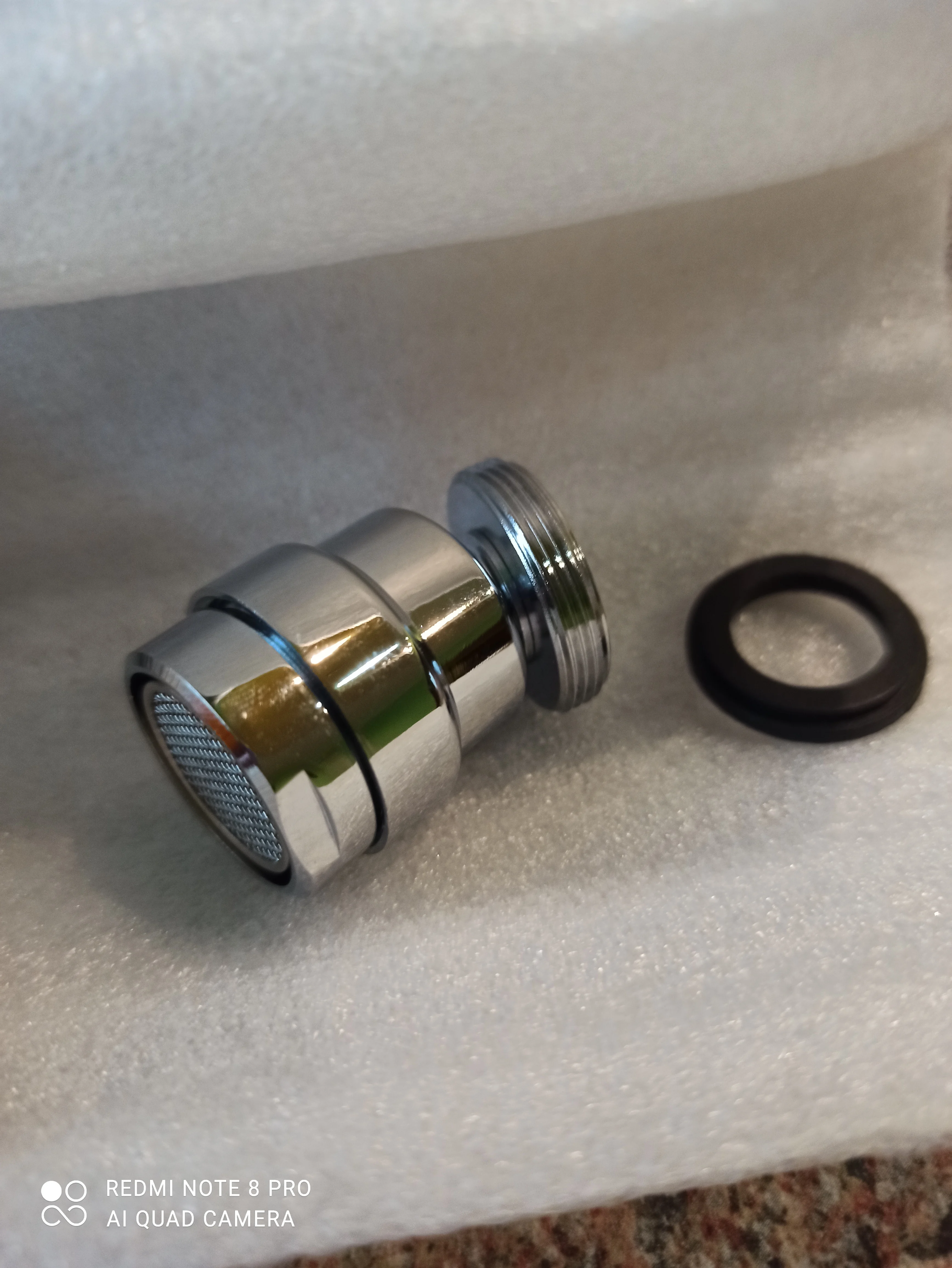 Хорошая упаковка, неплохое исполнение, работает как задумывалось - получилось немного отодвинуть струю от задней стенки умывальника. Но не было в комплекте резиновой прокладки между адаптером и смесителем, и резьба протекала, пришлось искать прокладку в домашних запасах. Приготовьте ещё ключ hex 8 мм, что бы плотно прикрутить адаптер к смесителю.