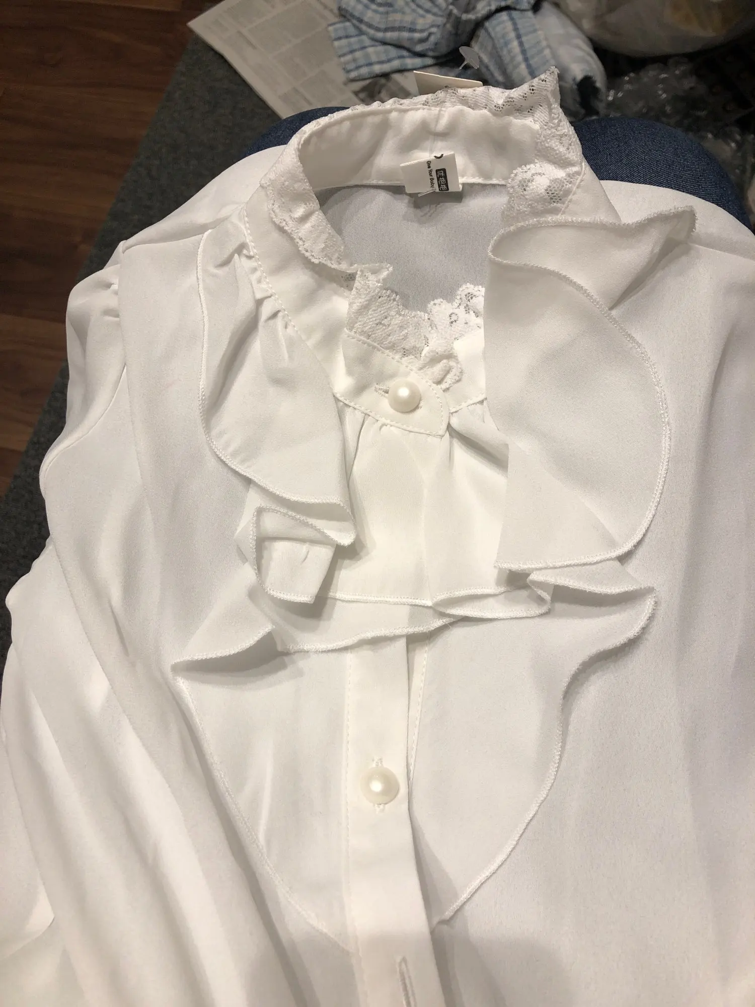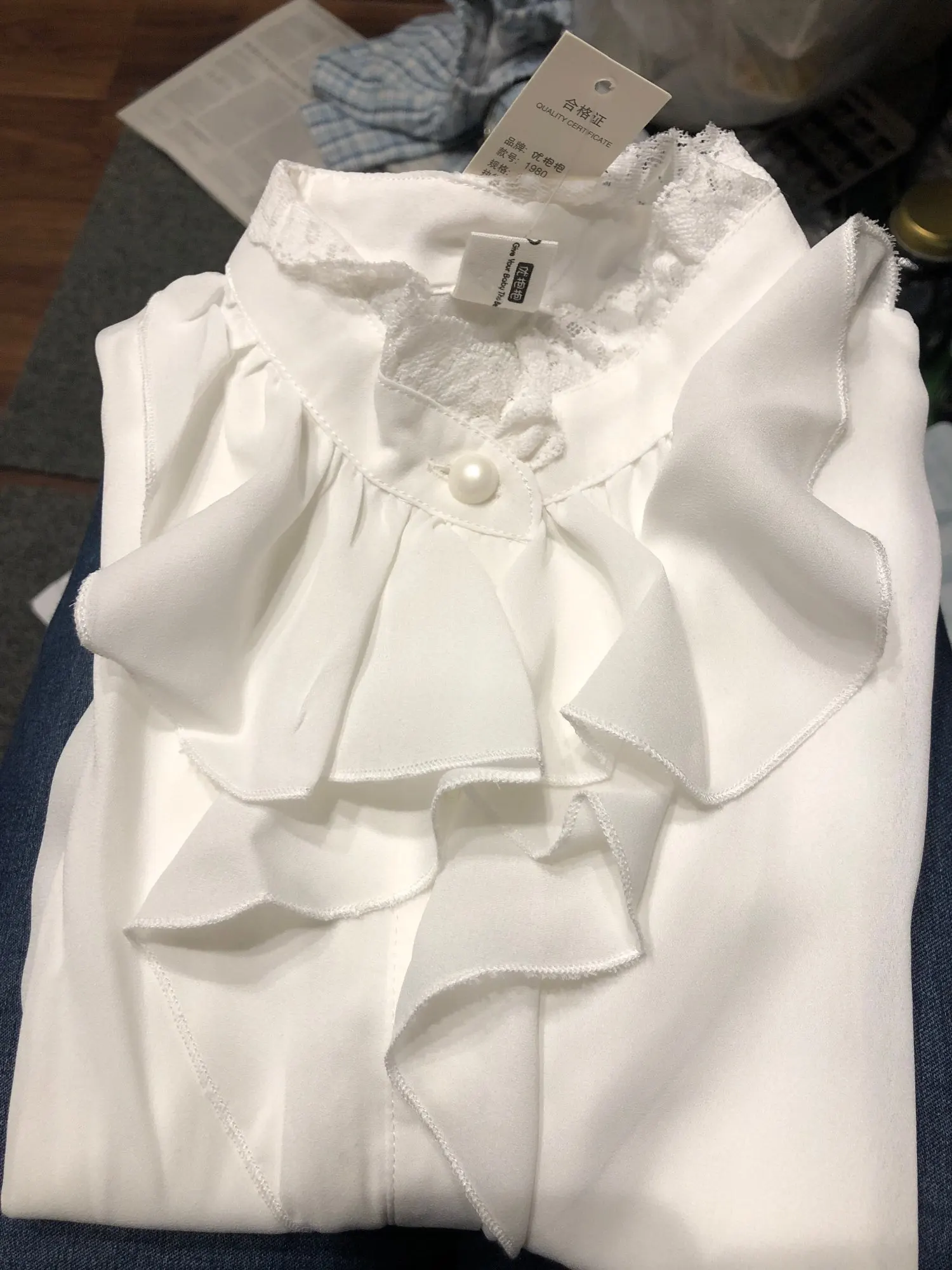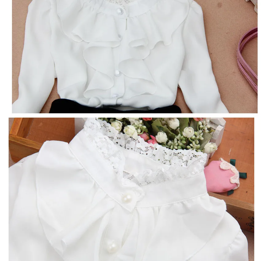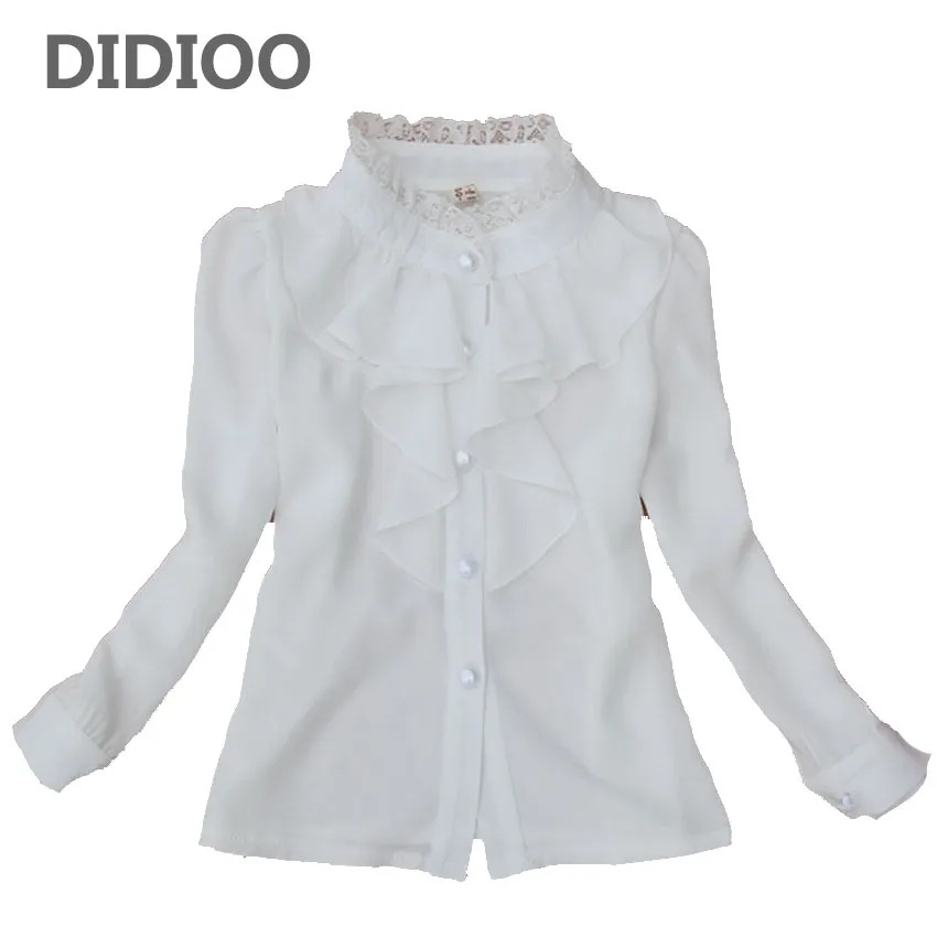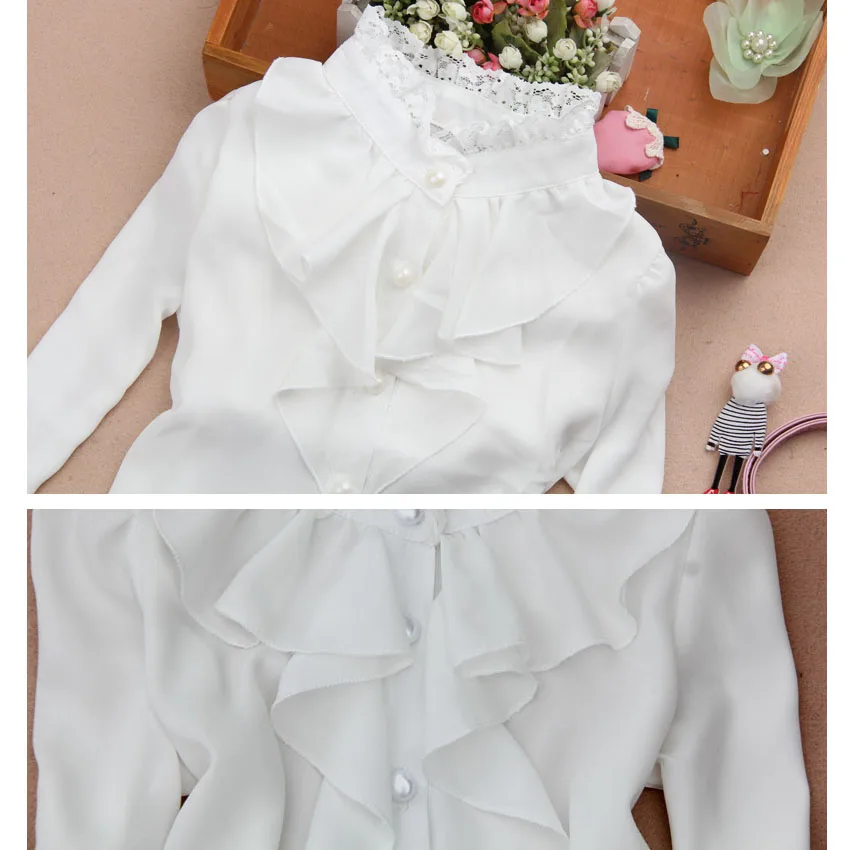 Новинка, детская одежда на весну и осень, брендовая хлопковая рубашка с круглым воротником и длинными рукавами, белые кружевные блузки с украшением для девочек