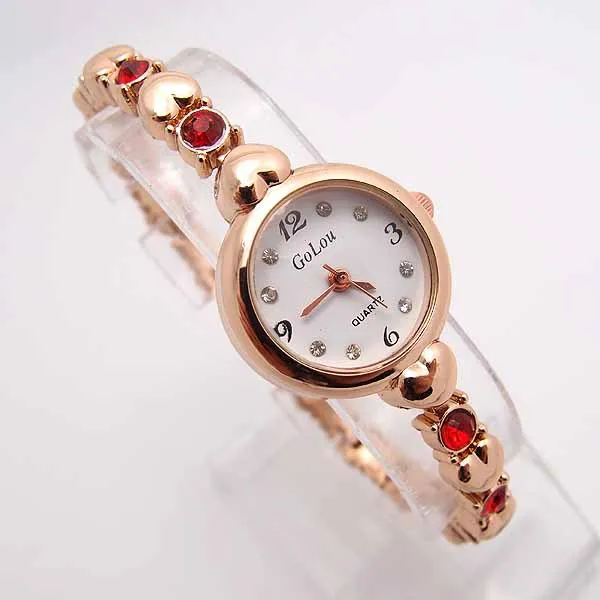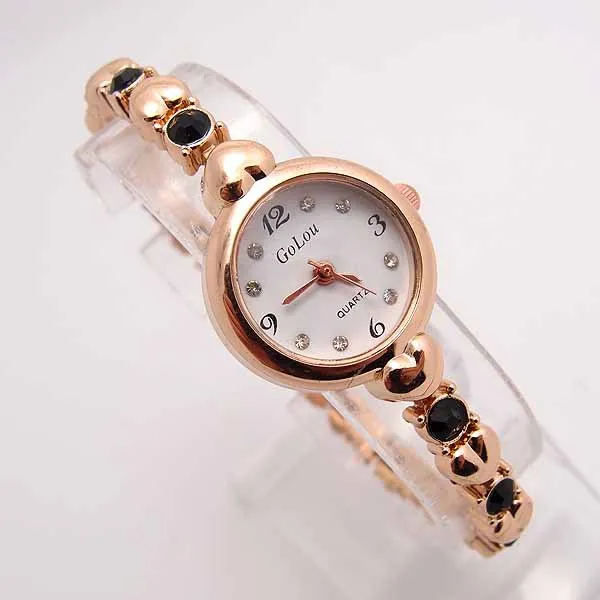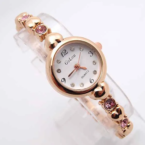 Горячая Распродажа, розовое золото, браслет с сердцем, часы для женщин, Дамская мода, Кристальное платье, кварцевые наручные часы, Relogio Feminino GO095