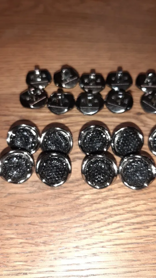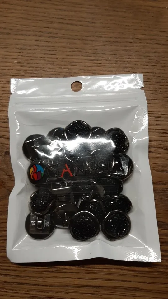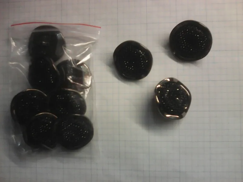 пуговицы пришли быстро, очень красивые, все блестят. единственный минус- две пуговицы были замазаны в каком то силиконовом клею, это можно отшоркать, но все равно я слегка огорчена. в целом я довольна, и мне нужно ещё. буду заказывать тут.
