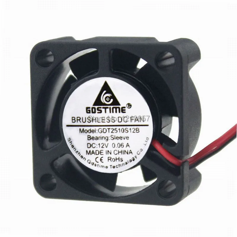 1 шт. Gdstime 25 мм 25x25x10 мм 2Pin 12 В мини Бесщеточный Охлаждающий вентилятор постоянного тока