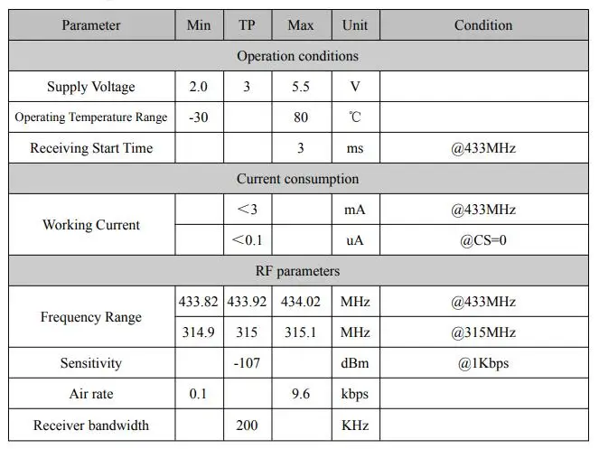 SRX882S-это новый модуль супергетеродинного приемника, запущенный NiceRF. С низким энергопотреблением, широким напряжением и высокой чувствительностью, его можно использовать с модулем передатчика ASK серии STX в NiceRF. Он соответствует сертификации ROHS, FCC, ETSI и CE. Модуль прост в использовании и может быть подключен к микроконтроллеру напрямую.