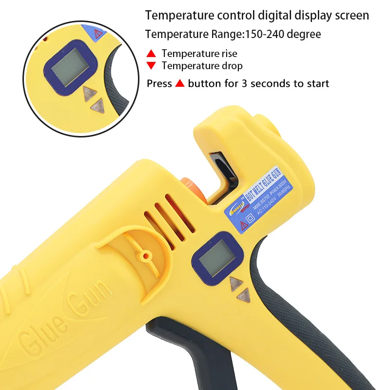 Пистолет клеевой промышленный с регулируемой температурой, 11 мм, 500 Вт, цифровой дисплей