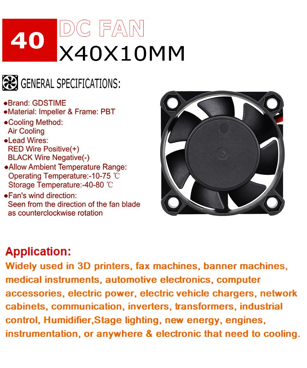 10 шт.Партия Кулер 40x40x10 мм 4010 2Pin 3Pin Dupont USB 5V 12V 24V 40mm 4cm DC чехол для компьютера Бесщеточный вентилятор охлаждения Втулка с отверстиями для шариков
