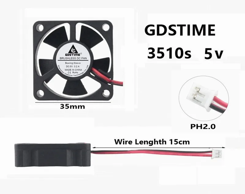 Gdstime охлаждающий вентилятор постоянного тока 5В 2Pin 35x35x10mm