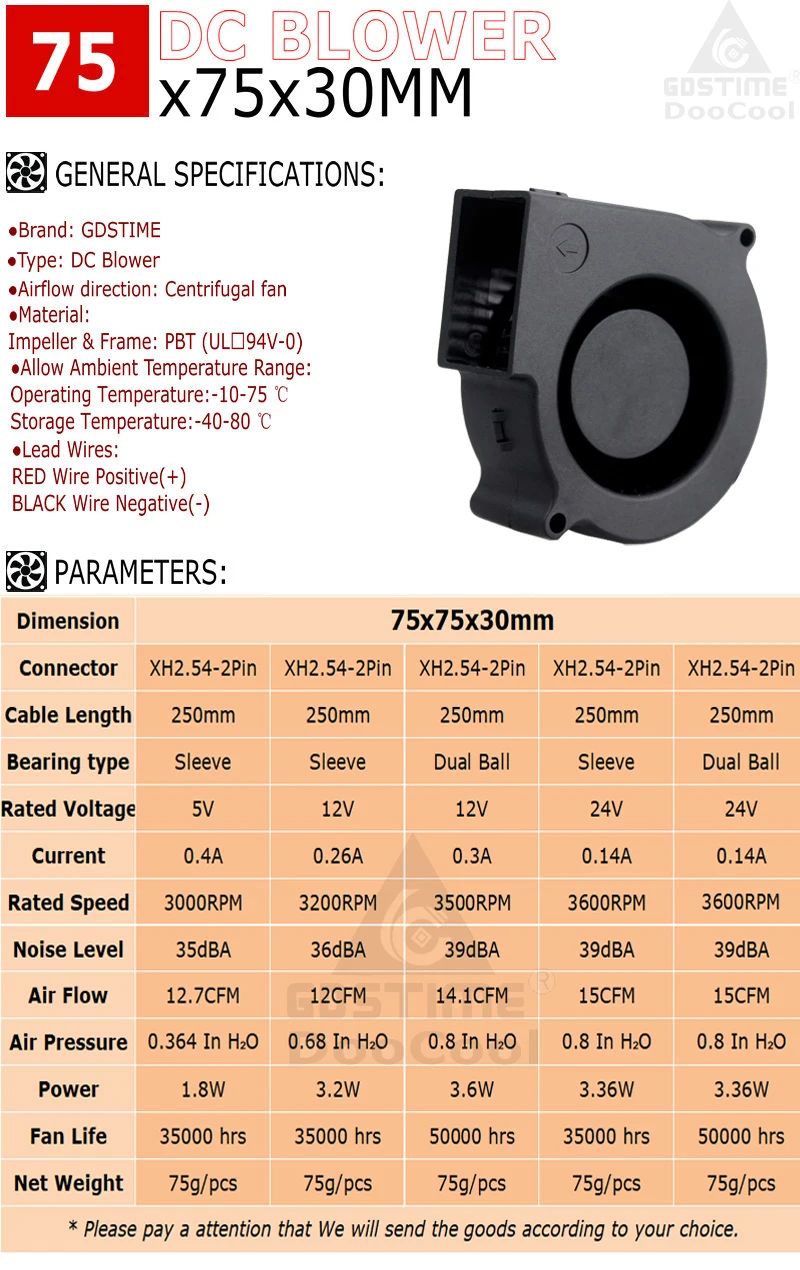 1 шт. Gdstime 7530 DC 5В 12В 24В 2Pin USB мячвтулка 75 мм 75x30 мм Турбовентилятор Вентилятор компьютер ПК Бесщеточный Охлаждающий центробежный вентилятор