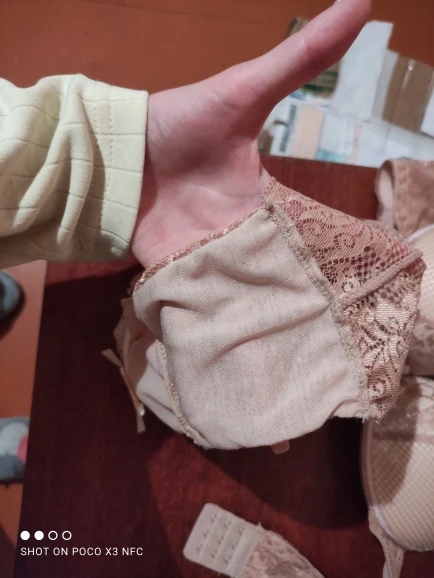 Я просто в восторге. Заказываю уже не первый раз, но только сейчас (после смс продавцу, хоть он и написал, что трусы все одного размера) получила не только правильный верх, но и низ комплекта. На мой 46-й они налезли. Раньше сразу выкидывала трусы совсем крошечные были. Чашки плотные, резинки тянутся хорошо. 3 крючка на застежке. Мне эти комплекты очень нравятся. Буду заказывать ещё.