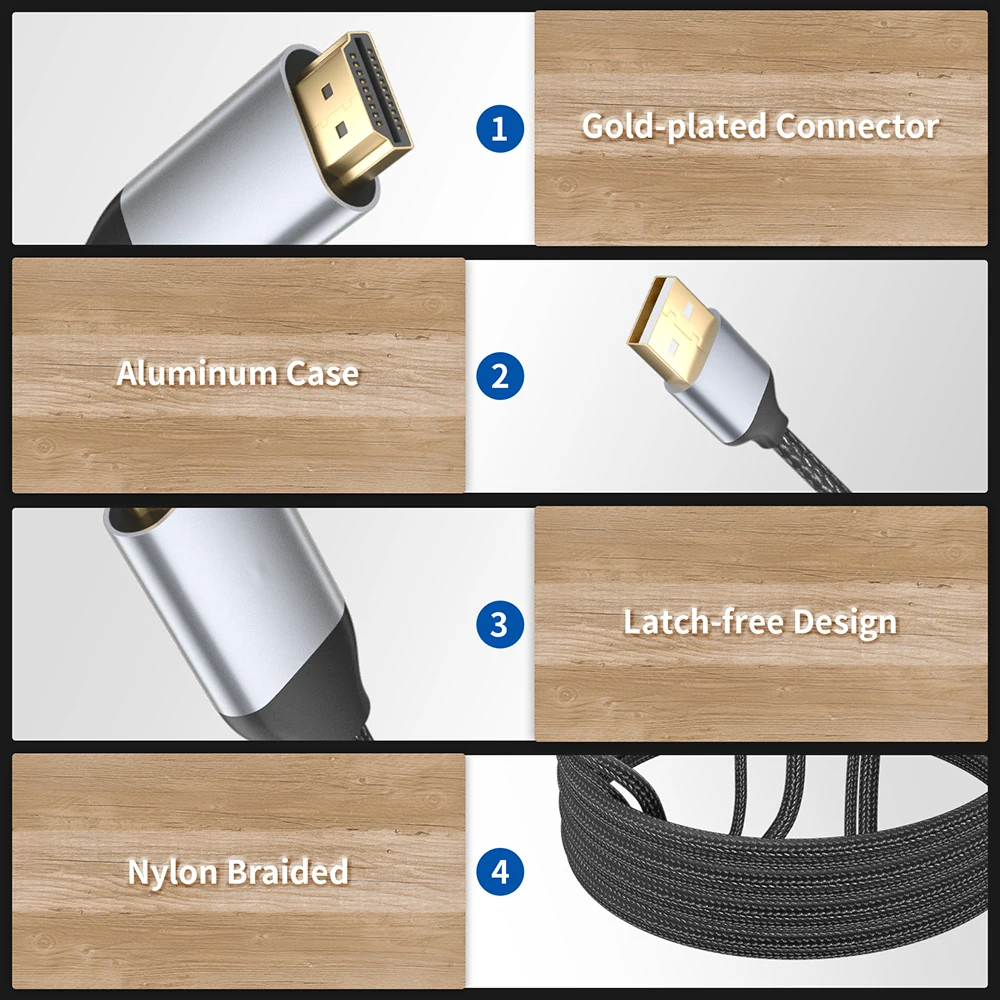 Кабель-преобразователь HDMI в Displayport, 4K, 60 Гц, 1,8 м, HDMI вход в DP выход, для PS4, Apple TV, ПК, HDMI для монитора с usb кабелем питания