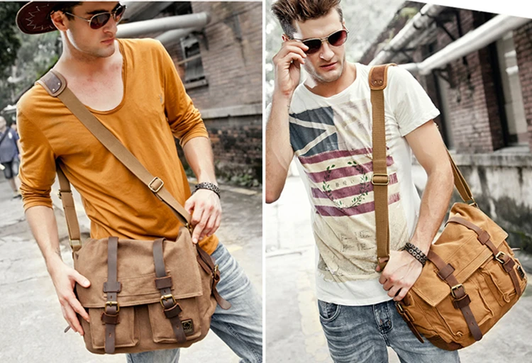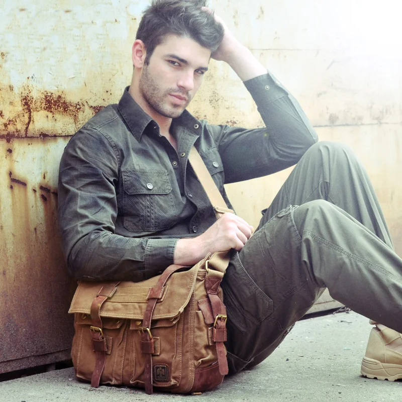 Сумка-мессенджер Мужская, для ноутбука и путешествий, из парусиновой кожи