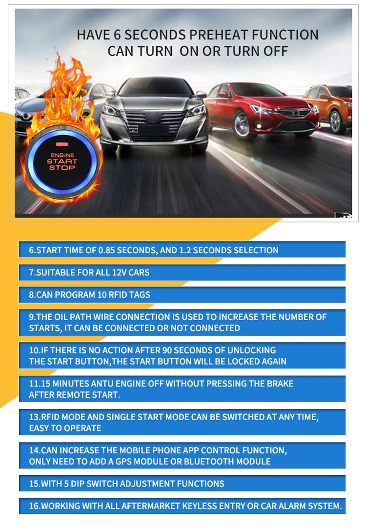 1.Этот продукт являетсяПодходит только дляАвтомобили сКлюч зажигания Пуск, бензин,Дизельный сжиженного нефтяного газаАвтомобили, иНе