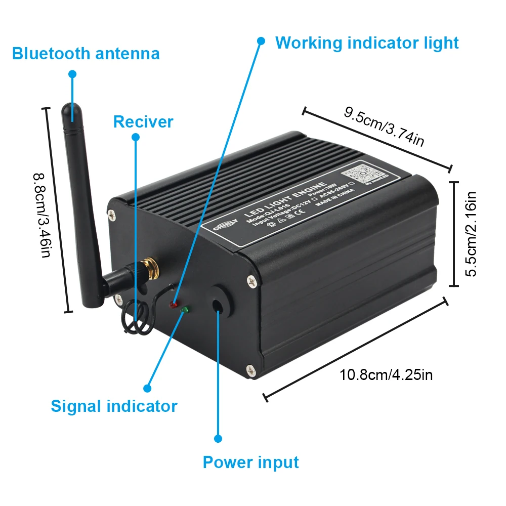 1x16 вт RGBW светильник двигателя (приложение Bluetooth и управление музыкой) 1x 28key RF пульт дистанционного управления(Аккумулятор в комплект не входит) 1 x концевой светящийся оптоволоконный кабель 1x5 шт., кристалл Адаптер питания-1 шт. 1 х Руководство пользователяЕсли вам нужен аккумулятор, пожалуйста, свяжитесь с нами, чтобы оплатить дополнительную стоимость доставки.