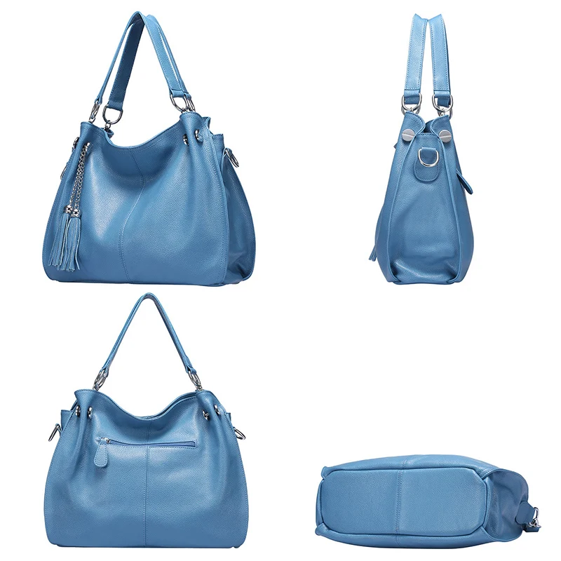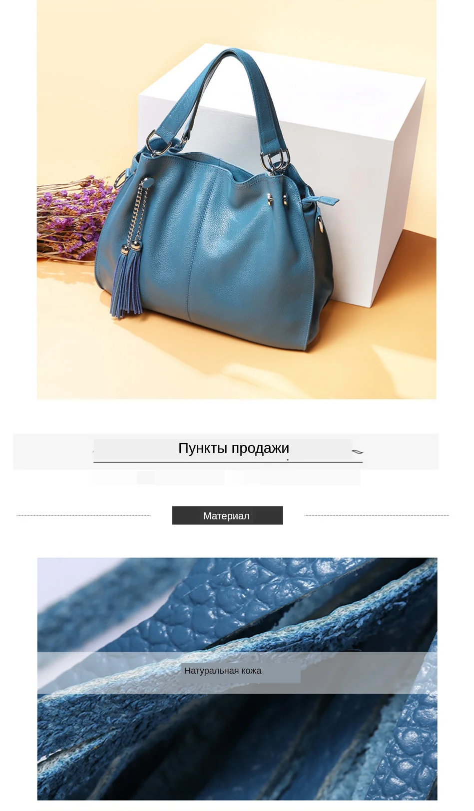 Сумка шикарная, модель стильная, как я и хотела. Кожаная и модная сумка. Прошита качественно. Размер, что надо , не маленькая , но и не огромная, средний размер, подойдёт под любой рост. Единственное цвет на фото больше голубой, а сумка немного темнее по факту. Но мне такой цвет тоже нравится, вот снег сойдёт буду носить, купила на весну и лето. Спасибо продавцу за красоту и качество товара, советую всем этот магазин!