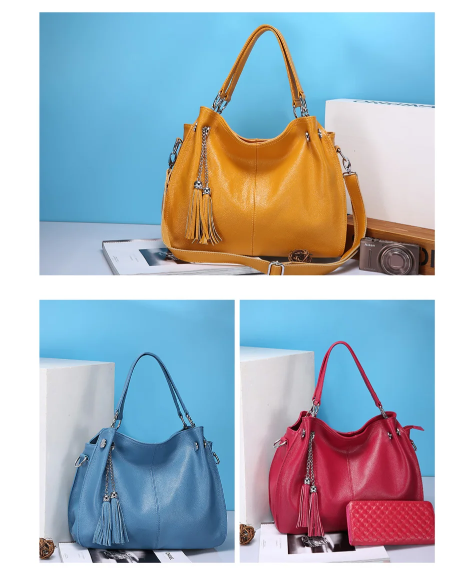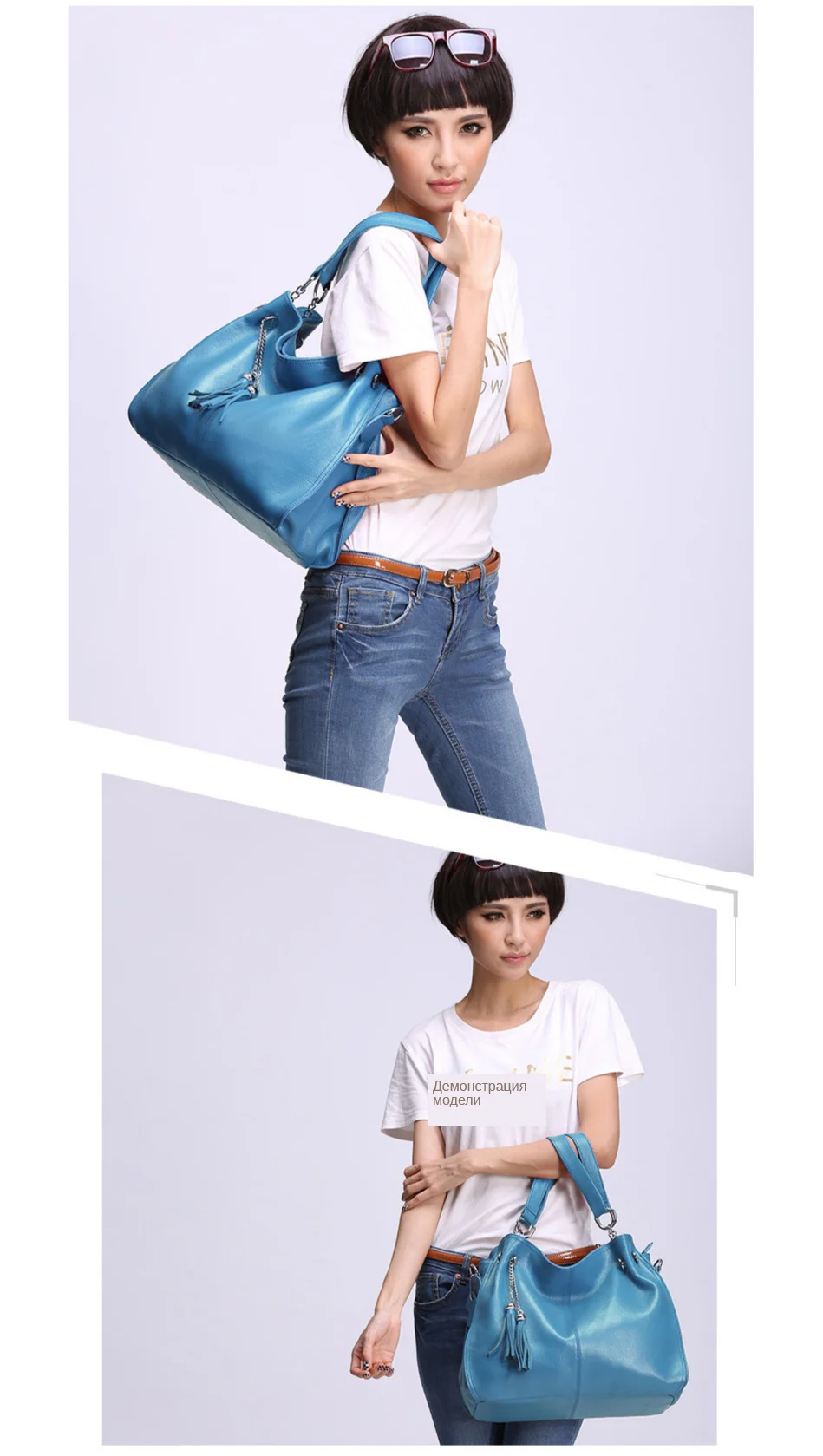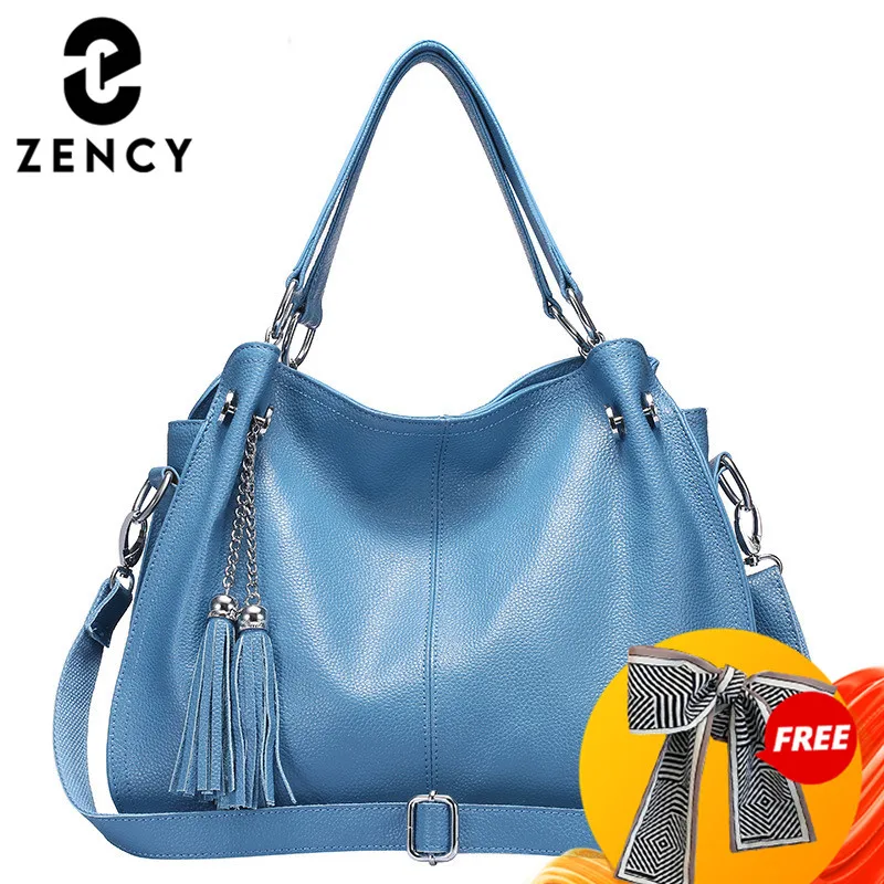 Zency Классическая Брендовая женская сумка на плечо из 100% натуральной кожи, модная сумка с кисточками, женская сумка-мессенджер через плечо, черный кошелек