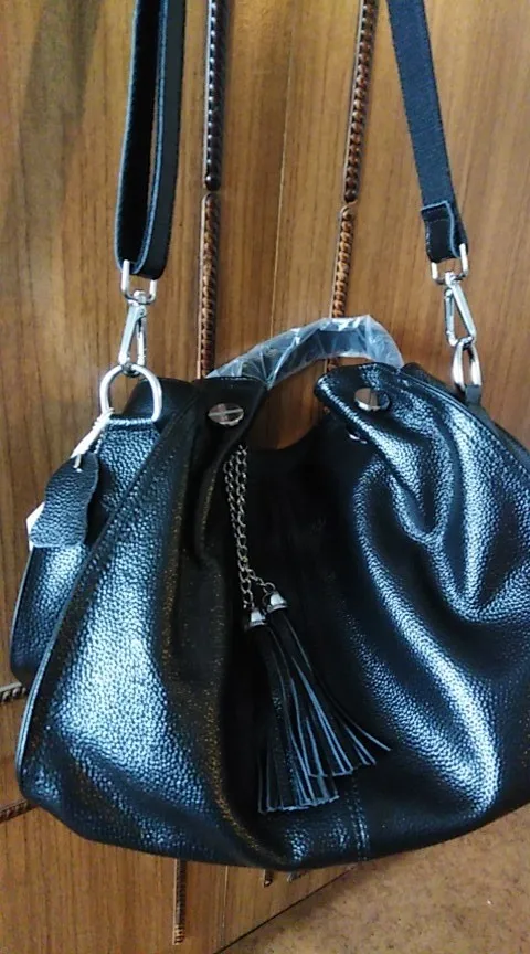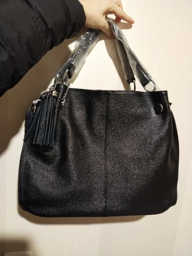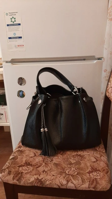 Сумка хорошая, качественная, цвет черный, достаточно вместительная, с хорошей фурнитурой, доставка на юг России месяц, почтой России, трек отслеживания. Продавец добросовестный, следить за развитием своего бренда. это не кустарное производство, а фабричное. Положили открытку с хорошими пожеланиями. Все части сумки в которых видно изнанку это кожа. Весит достаточно много, что тоже свидетельствует о том что пошита из толстой, настоящей кожи. Дно укреплено. Покупкой довольна. Продавца рекомендую.