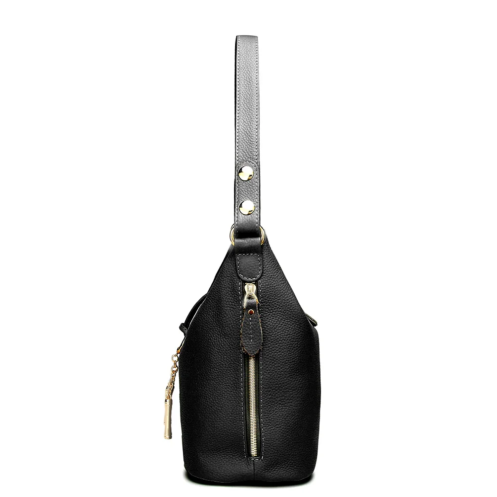 Zency Новая модная женская сумка через плечо с металлической кисточкой, 100% натуральная кожа, женская сумка через плечо, элегантная подарочная сумка, черная, белая