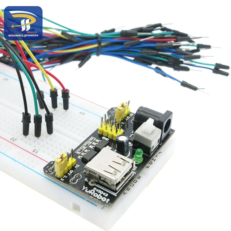 Макетная плата MB102 3,3 В5 В с модулем питания + 830 контактов, без пайки, комплект прототипной платы с 65 гибкими джамперами