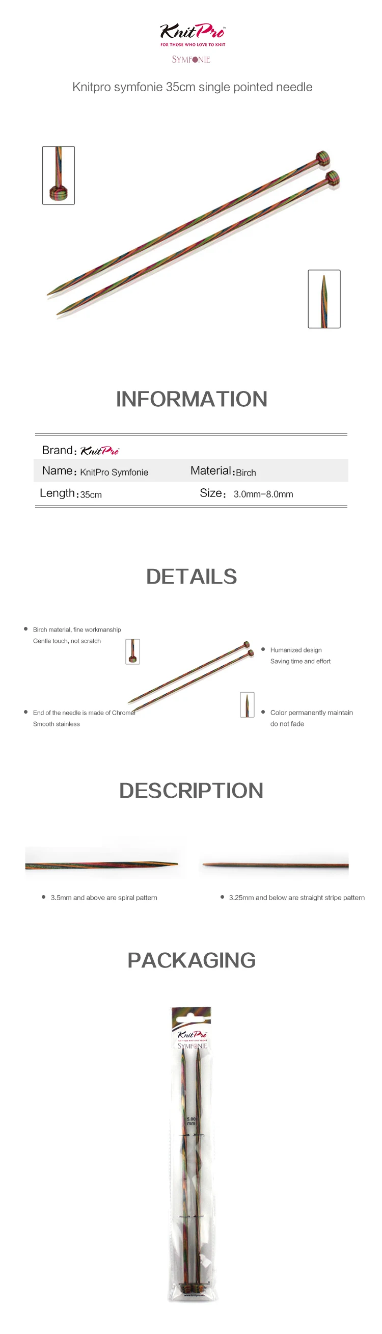Красивые Разноцветные деревянные иглы из Symfonie от вязальщицы по всему миру обожают их простоту в использовании, комфорт и, конечно же, потрясающий внешний вид! Великолепная деревянная поверхность идеально подходит для «скользящей» пряжи; Тепло приятно для рук, а иглы чудесно гибкие. Просто не отвлекайтесь на то, насколько они красивые... Эти иглы 35 см (14 дюймов) отлично подходят для крупных проектов. «Для тех, кто любит вязать»: спицы для вязания предназначены для людей, которые ценят качество и любят Вязание.