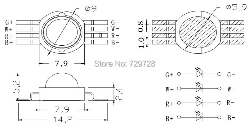 Цветной светодиод высокой мощности 4 Вт, RGBW