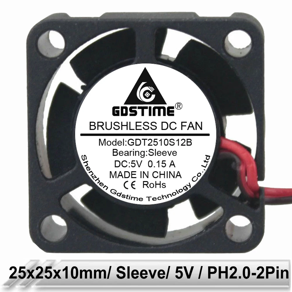 Вентилятор охлаждения Gdstime 2510, 25 мм, 25 мм x 25 мм x 10 мм, 2 контакта, 5 В, 10 шт.