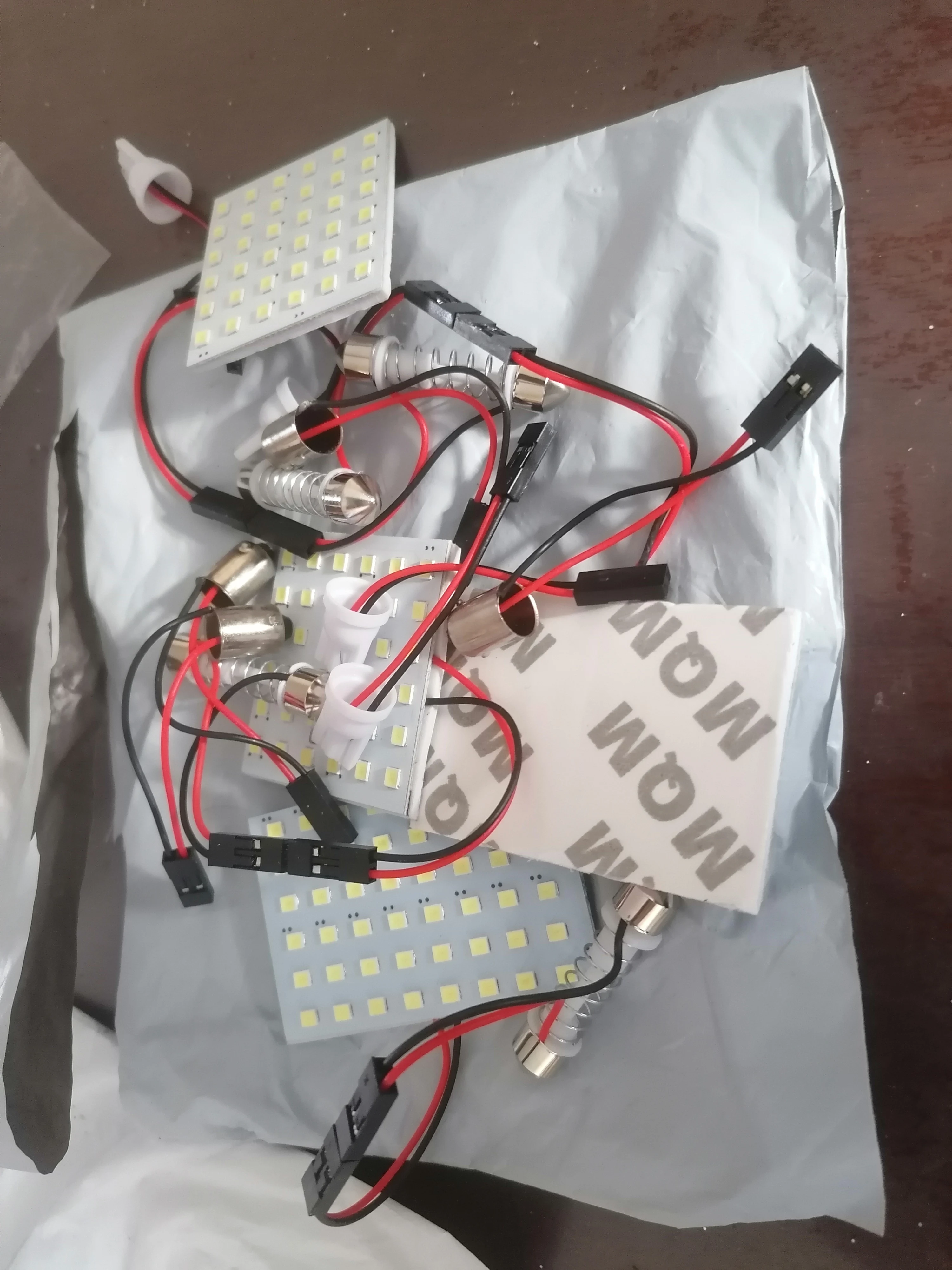 Заказывал 2 шт., идеально встали в передний и салонный плафоны Toyota TownAce. Светят достаточно ярко. При монтаже рекомендую удалить двусторонний скотч и приклеить светильник к какой нибудь металлической пластине (для теплоотвода) закрепленной внутри плафона на что-то вроде неоригинального герметика ABRO серого цвета (который воняет уксусом). Был печальный опыт применения таких светильников, когда в жару двери авто были открыты (auto paty) и из-за перегрева, т.к. просто прилепил на двусторонний скотч, часть мелких лампочек стали моргать. Шло в Омск почти 2 месяца, не знаю с чем связано, продавец скорее всего не виноват, но другие параллельные заказы у других продавцов сделанные позже уже давно пришли, а этот вот только пару дней назад.