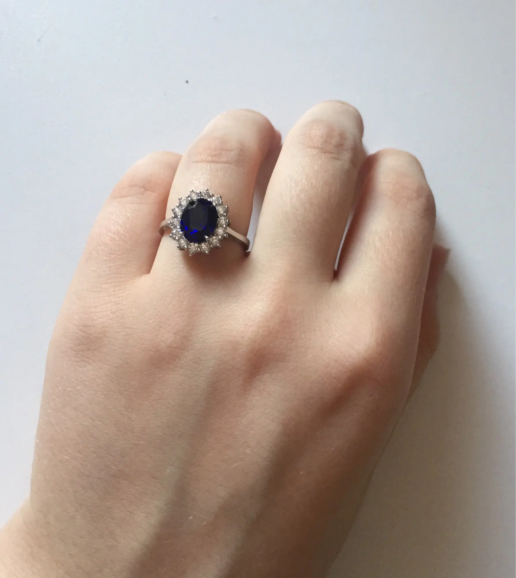 Кольцо обручальное женское из серебра 925 пробы с голубым сапфиром