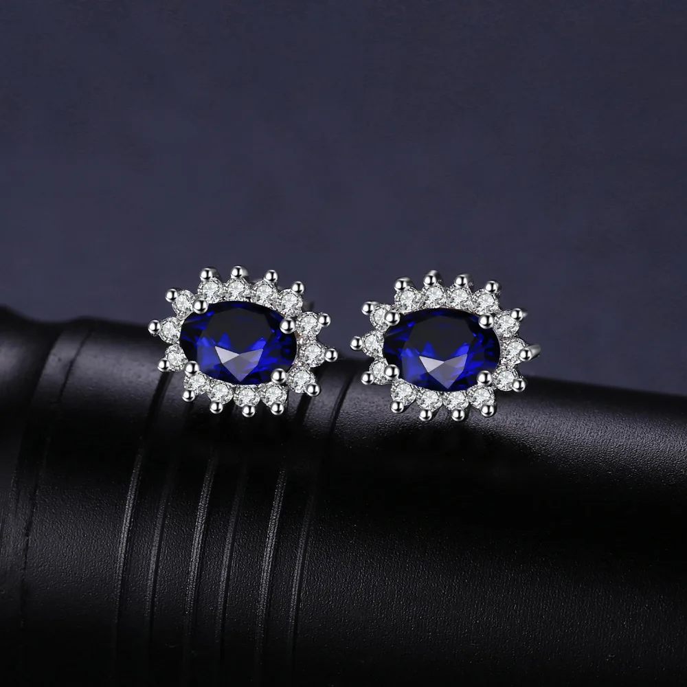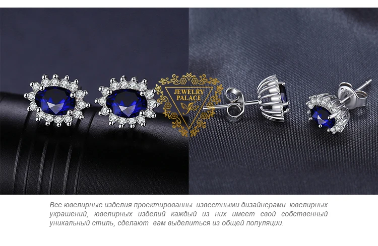 Серьги-гвоздики женские из серебра 925 пробы с сапфиром голубого цвета
