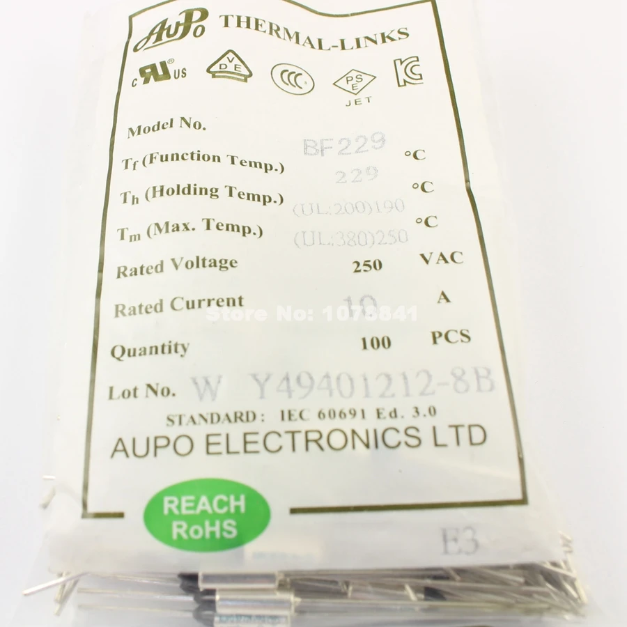 10 шт., Термопредохранитель AUPO, отключение TF, 229 градусов, 250 В, 10 А, BF229 icon star icon star icon star icon star icon star