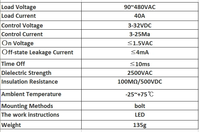 SSR Однофазное твердотельное реле постоянного тока высокого напряжения 40a, вход 3-32vdc, выход 90 ~ 480vac, тип ZG3NC-340B