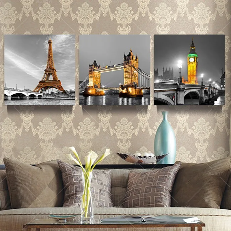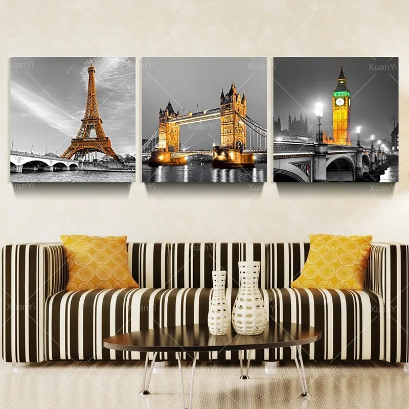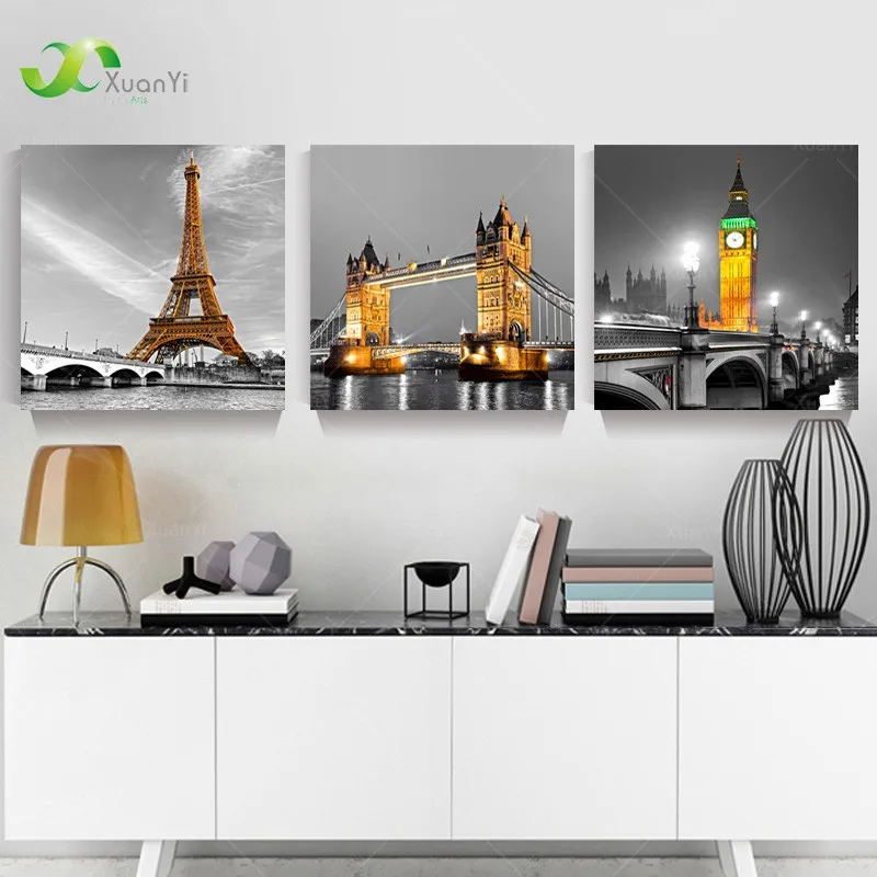 3 Панели Париж Effiel башня Холст Картина маслом городской строительный мост пейзаж настенное Искусство Современная печать без рамки PR119