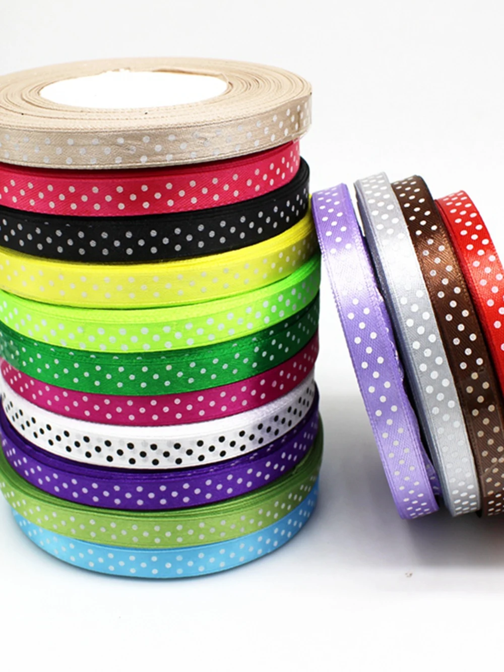 150Y 3/8 "(1 см) атласная лента с принтом в белый горошек для девочек, упаковочным ремнем подарок Свадебные вечерние деко craft Луки аксессуаров оде... icon star icon star icon star icon star icon star