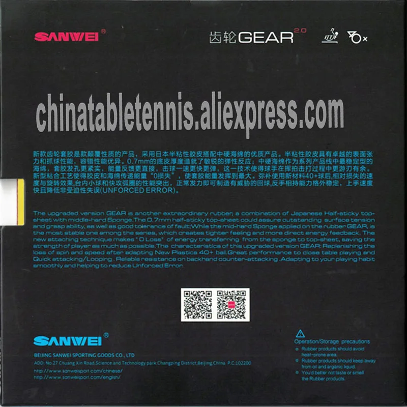 Резиновая губка для пинг-понга SANWEI 2019, новые шестерни 2,0 (GEAR 2,0, полулипкая, Противоударная) для настольного тенниса
