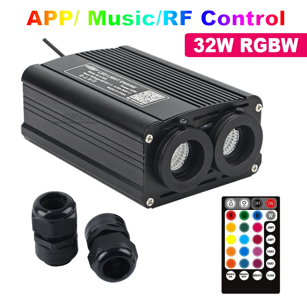 RGBW 32 Вт светодиодный волоконно-оптический двигатель Smart BluetoothмузыкаРЧ пульт дистанционного управления двойной головной светильник источник для всех волоконно-оптических кабелей