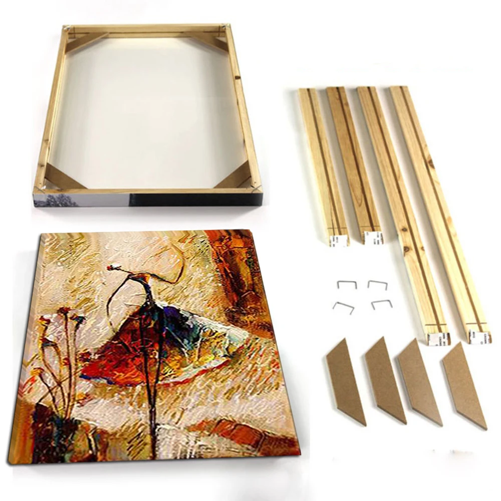 Если вы заказали картину с рамкой, то вы получите один холст и одну деревянную рамку, вы получите одну бумагу для иллюстрации, чтобы установить холст, это очень легко и просто