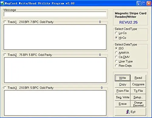 Чтение/запись/стирание 300-4000 oe Mag.card