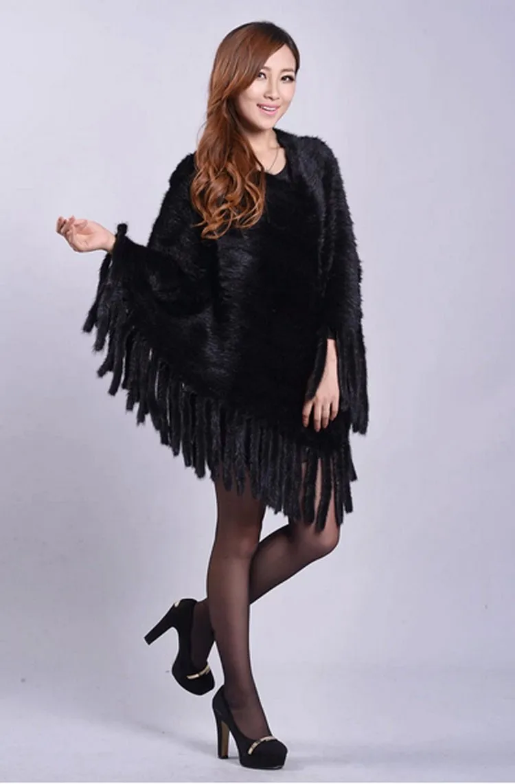 Модное меховое пальто, норковая вязаная шаль, женское натуральное вязаное Норковое Пальто
